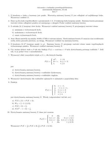 wylosowanego punktu. Wyznaczyć rozkład zmiennej losowej X.