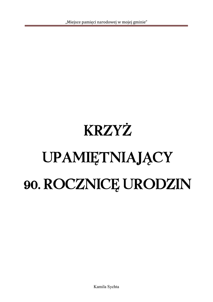 KRZYŻ UPAMIĘTNIAJĄCY 90. ROCZNICĘ URODZIN /oprac. Kamila