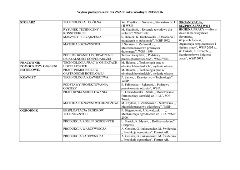 Wykaz podręczników dla ZSZ w roku szkolnym 2015/2016