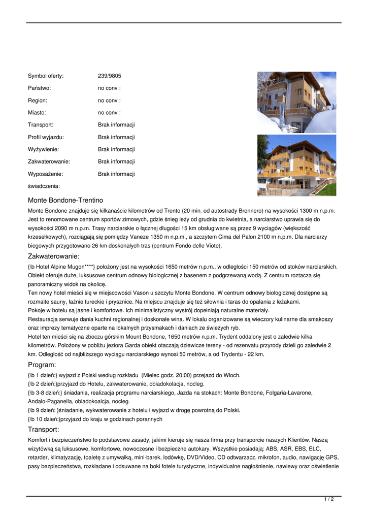 FERIE ZIMOWE-WCZASY RODZINNE Włochy/Monte