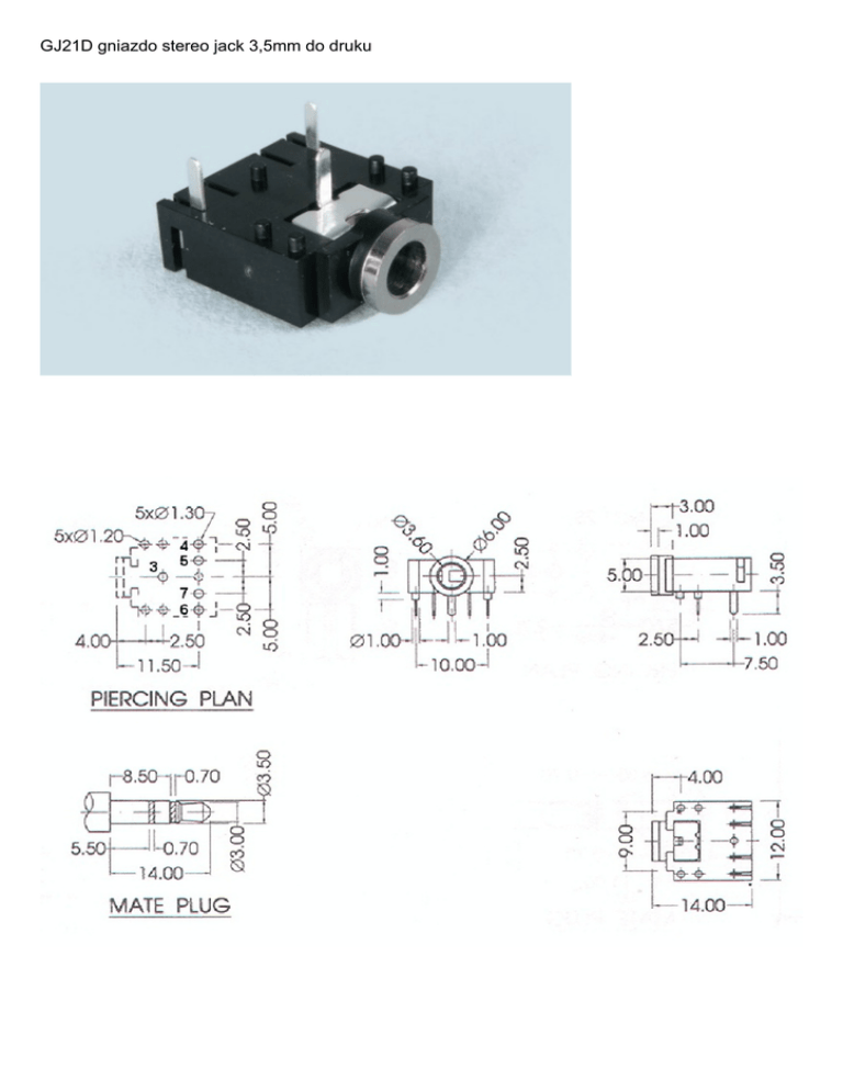 GJ21D gniazdo stereo jack 3,5mm do druku
