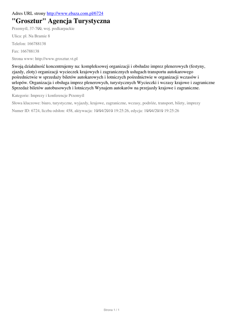 "Grosztur" Agencja Turystyczna, Przemysl, pl. Na