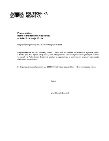 Pismo Okólne Rektora PG nr 8/2015 z 8 maja 2015 r. w sprawie
