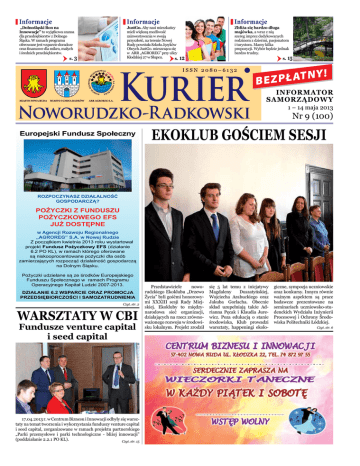 Informacje Informacje „Dolnośląski Bon na Innowacje” to wyjątkowa szansa dla przedsiębiorstw z Dolnego Śląska. W ramach programu oferowane jest wsparcie doradcze oraz finansowe dla mikro, małych i średnich przedsiębiorstw. s. 3 Bezpłatny Informator DLa JustGo. Aby nasi mieszkańcy mieli większą możliwość zainwestowania w swoją przyszłość, na terenie Nowej Rudy powstała Szkoła Języków Obcych JustGo. mieszcząca się w ARR „AGROREG” przy ulicy Kłodzkiej 27 w Słupcu. s. 12 małeJ I ŚreDnIeJ Informacje Zbliża się bardzo długa majówka, a wraz z nią szereg imprez dedykowanych rodzinom z dziećmi, pasjonatom i turystom. Mamy kilka propozycji. Wybór będzie jednak bardzo trudny. s. 15 przeDSIĘBIorCzoŚCI Wiadomości gospodarcze ! y n t a ł p bez Ziemi Kłodzkiej issn 2080–6132 informator samorządowy 1 – 14 maja 2013 Wydawca: Agencja Rozwoju Regionalnego „AGROREG” S.A. w Nowej Rudzie, ul. Kłodzka 27. kwIeCIeń 2013 nr 65 ISSn 1732-1336 www.warr.pl; www.dwup.pl; www.umwd.pl; www.e-msp.pl; www.stat.gov.pl; www.parp.gov.pl; www.praca.gov.pl; www.mgpips.gov.pl; www.funduszestrukturalne.gov.pl europejski fundusz Społeczny Nr 9 (100) STRATEGIA ROZWOJU EKOKLUB GOŚCIEM SESJI WOJEWÓDZTWA DOLNOŚLĄSKIEGO 2020 PRZYJĘTA rozpoCzynaSz DzIałaLnoŚĆ GoSpoDarCzĄ? poŻyCzkI z fUnDUSzU poŻyCzkoweGo efS JUŻ DoStĘpne w agencji rozwoju regionalnego „aGroreG” S.a. w nowej rudzie Z początkiem kwietnia 2013 roku wystartował projekt fundusz pożyczkowy efS (działanie 6.2 PO KL), w ramach którego oferowane są niskooprocentowane pożyczki dla osób zamierzających rozpocząć działalność gospodarczą na Dolnym Śląsku. Pożyczki udzielane są ze środków Europejskiego Funduszu Społecznego w ramach Programu Operacyjnego Kapitał Ludzki 2007-2013. DzIałanIe 6.2 wSparCIe oraz promoCJa przeDSIĘBIorCzoŚCI I SamozatrUDnIenIa Czyt. str. 2 Uczestnikiem projektu mogą być osoby fizyczne: 1) mieszkające na terenie województwa dolnośląskiego; 2) w dniu rekrutacji do projektu nie prowadziły zarejestrowanej działalności gospodarczej oraz w okresie 12 miesięcy poprzedzających dzień przystąpienia do projektu nie posiadały zarejestrowanej działalności gospodarczej. warsztaty w CBI Fundusze venture capital i seed capital Więcej str. 3 Podczas XXXII sesji sejmiku, radni przyjęli projekt Strategii Rozwoju Województwa Dolnośląskiego 2020. Ten strategiczny dokument precyzuje cele i kierunki rozwoju Dolnego Śląska na najbliższe osiem lat. Przyjęta 28 lutego Strategia to jeden z najważniejszych dokumentów w historii samorządu Dolnego Śląska. Projekt Strategii zaprezentowano 8 października 2012 r. podczas gali z udziałem Prezydenta RP Bronisława Komorowskiego i całego zarządu województwa. Konsultacje społeczne nad tym Przedstawiciele nowodokumentem trwały ponad rudzkiego Ekoklubu „Drzewo dwa miesiące. Whonorowysumie odŻycia” byli gośćmi było się ponad 60 spotkań zami XXXIII sesji Rady Miejplanowanych między innymi skiej. Ekokluby to międzywe wszystkich na narodowa sieć powiatach organizacji, terenie całego województwa, działających na rzecz zrównow tym 4 rozwoju większewkonferenważonego środowicje we Wrocławiu, Legnisku lokalnym. Projekt zrodził cy, Jeleniej Górze i Wałbrzychu oraz 2 spotkania transgraniczne w Zgorzelcu i Kudowie-Zdrój. Łącznie wzięło w nich udział około 2,5 tysiąca osób. Wszelkie uwagi do projektu Strategii można było zgłaszać poprzez specjalnie stworzony formularz on-line oraz tradycyjną pocztę lub na adres e-mail. Łącznie zostało zgłoszonych 2095 uwag. Zakres zgłaszanych uwag i postulatów w dużej mierze koncentrował się na kwestiach infrastrukturalsię 5 lat temu z inicjatywy nych, chociaż nie brakowało Magdaleny Duszatyńskiej, też kwestii nazewnictwa Wojciecha Arabuckiego oraz i wyznaczania Jakuba Gorlacha.obszarów Obecnie interwencji w projekcie skład uzupełniają także StraAdtegii. Wzbogacony o uwagi rianna Pęcak i Klaudia Jurezgłoszone podczas okonsulwicz. Poza edukacją stanie tacji dokument styczniu środowiska, Klubw prowadzi 2013 r. został zatwierdzony warsztaty, happeningi ekoloprzez zarząd województwa, a następnie przedstawiony radnym. Obszerne fragmenty Strategii wewnątrz numeru Na stronach internetowych http://rpo.dolnyslask.pl/ i www.pokl.dwup.pl znajdują się aktualne ogłoszenia o konkursach na dotacje w ramach Regionalnego Programu Operacyjnego dla Województwa Dolnośląskiego oraz Programu Operacyjnego Kapitał Ludzki na lata 2007-2013 17.04.2013 r. w Centrum Biznesu i Innowacji odbyły się warsztaty na temat tworzenia i wykorzystania funduszy venture capital i seed capital, zorganizowane w ramach projektu partnerskiego „Parki przemysłowe i parki technologiczne - bliżej innowacji” (poddziałanie 2.2.1 PO KL). Czyt. str. 15 giczne, sympozja uczniowskie oraz konkursy. Innym równie ważnym aspektem są prace badawcze prezentowane na seminariach uczniowsko-studenckich Wydziału Inżynierii Procesowej i Ochrony Środowiska Politechniki Łódzkiej. Czyt. str. 6 2 Kurier Noworudzko-R adkowski nr 9 (100) 1 – 14 maja 2013 Strona Agencji Rozwoju Regionalnego „AGROREG” S.A. w Nowej Rudzie Mgr Małgorzata Czadankiewicz – Przedstawiciel VISUS na Polskę Visus s.r.o. Malczewskiego 47 lok. 14, 02-622 Warszawa, Tel: +48 602 754 963, e-mail: [email protected] ROZPOCZYNASZ DZIAŁALNOŚĆ GOSPODARCZĄ? POŻYCZKI Z FUNDUSZU POŻYCZKOWEGO EFS JUŻ DOSTĘPNE w Agencji Rozwoju Regionalnego „AGROREG” S.A. w Nowej Rudzie Z początkiem kwietnia 2013 roku wystartował projekt Fundusz Pożyczkowy EFS (działanie 6.2 PO KL), w ramach którego oferowane są niskooprocentowane pożyczki dla osób zamierzających rozpocząć działalność gospodarczą na Dolnym Śląsku. Pożyczki udzielane są ze środków Europejskiego Funduszu Społecznego w ramach Programu Operacyjnego Kapitał Ludzki 2007-2013. DZIAŁANIE 6.2 WSPARCIE ORAZ PROMOCJA PRZ