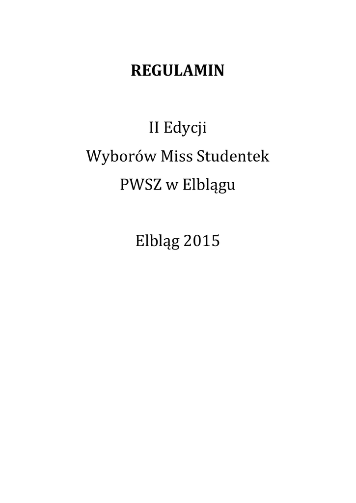 REGULAMIN II Edycji Wyborów Miss Studentek PWSZ w