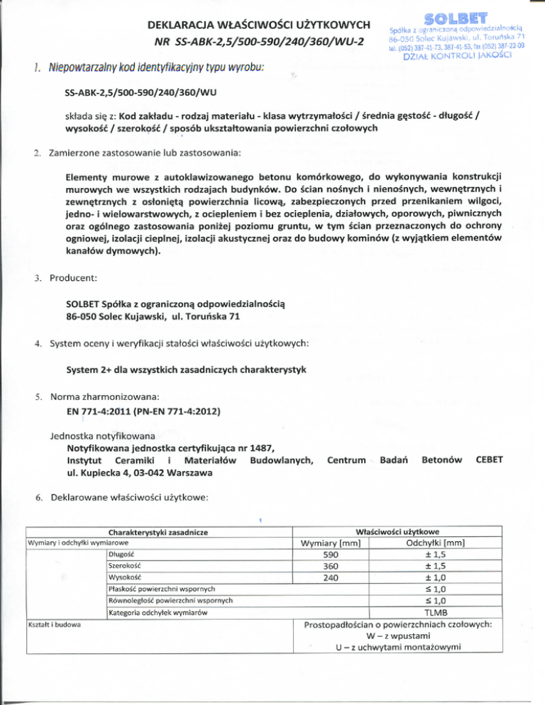 Notyfikowana jednostka certyfikujqca nr 1487,