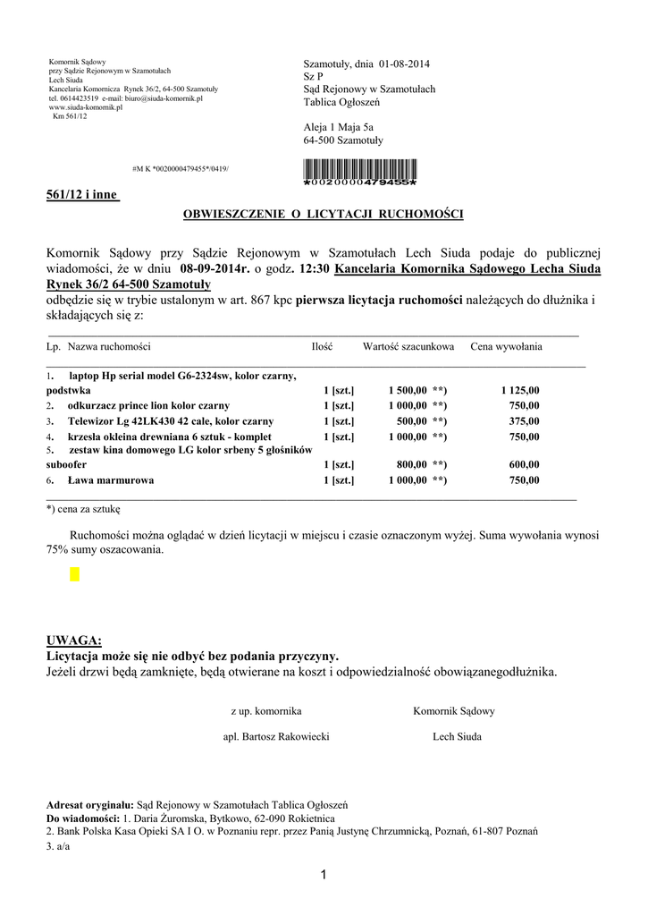 1 *0020000479455* 561/12 i inne Komornik Sądowy przy Sądzie