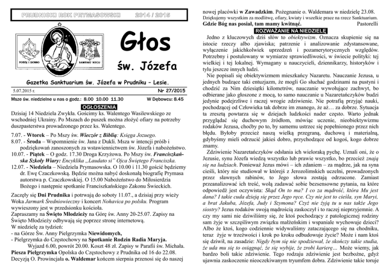 Głos św. Józefa - Sanktuarium św. Józefa w Prudniku