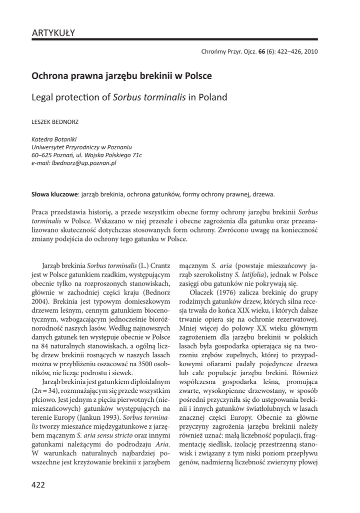 ARTYKUŁY Ochrona prawna jarzębu brekinii w Polsce