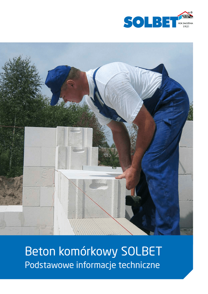 Beton komórkowy SOLBET Podstawowe informacje techniczne Gęstość / wytrzymałość na ściskanie Średnia wytrzymałość na ściskanie [MPa] Gęstość brutto [kg/m3] SS - Solec Kujawski SP - Podnieśno 400 2,00 2,00 500 2,50 2,50 600 3,00 3,00 600 4,00 – 700 4,00 – Pełne dane dostepne są w deklaracjach właściwości użytkowych na www.solbet.pl Izolacyjność cieplna Wartości współczynnika przenikania ciepła U [W/m2·K] dla ścian z bloczków SOLBET λ10,dry Wsp. obliczeniowy λ przy współczynniku Fm = 1,03* [kg/m ] [W/mK] [W/mK] Gęstość brutto Współczynnik charakterystyczny 3 400 0,100 0,110 500 0,130 0,140 600 0,160 0,170 700 0,180 0,190 Wartość współczynnika przenikania ciepła dla ścian z bloczków SOLBET o określonej gęstości brutto i grubości wyrażonej w milimetrach 60 80 100 120 180 240 300 360 420 0,29 0,25 U [W/m K] 2 0,43 1,92 1,57 1,32 0,98 0,69 0,53 0,44 0,37 1,15 0,82 0,64 0,52 0,44 1,25 0,70 * Współczynnik Fm wynikający z badań materiałów SOLBET, przeprowadzonych przez Instytut KIWA – MPA w Berlinie. Izolacyjność akustyczna Wskaźniki oceny izolacyjności akustycznej właściwej RA1R oraz RA2R [dB] dla murów z bloczków SOLBET, w zależności od grubości ściany. Gęstość brutto Wartość wskaźnika RA1R dla ścian wewnętrznych 60 80 100 120 [kg/m3] 180 500 33 700 300 360 420 60 80 100 120 [dB] 400 600 240 Wartość wskaźnika RA2R dla ścian zewnętrznych 34 36 240 300 360 420 42 44 [dB] 41 44 46 36 41 44 46 48 38 43 46 48 50 40 180 47 38 32 33 34 48 34 37 40 42 45 35 39 42 45 47 36 44 Klasyfikacja odporności ogniowej Grubość ściany [mm] Poziom obciążenia 0 0,2 0,6 1,0 100 EI 240* 120 EI 240 / EI 240* REI 240 REI 240 REI 120 180 EI 240 REI 240 REI 240 REI 240 240 EI 240 REI 240 REI 240 REI 240 300 EI 240 REI 240 REI 240 REI 240 360 EI 240 REI 240 REI 240 REI 240 420 EI 240 REI 240 REI 240 REI 240 Klasyfikacja w zakresie odporności ogniowej dla ścian wykonanych z elementów murowych SOLBET - wg Zakładu Badań Ogniowych Instytutu Techniki Budowlanej w Warszawie. Klasy odporności ogniowej wg PN-EN 13501 w zależności od grubości ścian i od poziomu obciążenia. * Badania wykonane na potrzeby aprobaty technicznej AT9080/2013, w Laboratorium Badań Ogniowych Instytutu Techniki Budowlanej. Ściany łączone na klej poliuretanowy SOLBET SMART. 2 Klasyfikacja ogniowa ścian z bloczków SOLBET wg PN-EN-1996-1-2 Projektowanie konstrukcji murowych. Część 1-2: Reguły ogólne - Projektowanie z uwagi na warunki pożarowe. EI (wg tablicy N.B.4.1 PN-EN 1996-1-2) ściany nieotynkowane Szerokość [mm] REI (wg tablicy N.B.4.2 PN-EN 1996-1-2) ściany otynkowane ściany nieotynkowane ściany otynkowane proporcje obciążenia ściany proporcje obciążenia ściany α≤1 α ≤ 0,6 α≤1 α ≤ 0,6 dolna granica górna granica dolna granica górna granica 60 EI 60 EI 90 EI 90 EI 120 – – 80 EI 90 EI 180 EI 120 EI 180 – – 100 EI 90 EI 240 EI 180 EI 240 dolna granica górna granica dolna granica górna granica dolna granica górna granica REI 30 REI 120 REI 30 REI 120 REI 30 REI 120 120 EI 240 REI 60 REI 120 REI 90 REI 120 REI 90 REI 120 180 EI 240 REI 90 REI 240 REI 180 REI 240 REI 90 REI 240 240 EI 240 REI 180 REI 240 REI 240 REI 180 REI 240 300 EI 240 REI 180 REI 240 REI 240 360 EI 240 EI 240 420 EI 240 EI 240 dolna granica górna granica REI 30 REI 120 REI 120 REI 180 REI 240 REI 240 REI 240 Uwagi do tabeli: • Podana w tabeli grubość dotyczy grubości muru bez wykończenia, czyli zastosowanych bloczków. • Przez pojęcie ściany otynkowanej rozumie się ścianę otynkowaną obustronnie tynkiem gipsowym lub zaprawą tynkarską izolującą cieplnie o grubości 10 mm lub otynkowanej jednostronnie, po stronie narażonej na działanie ognia. •Współczynnik α – oznacza proporcje obciążenia ściany do nośności. Współczynnik przenikania ciepła U[W/m2·K] dla wybranych rozwiązań ścian z bloczków SOLBET Gęstość brutto [kg/m3] 400 Wymiar bloczka [mm] Wsp. obliczeniowy λ przy współczynniku Fm = 1,03 [W/mK] 10 cm 12 cm 15 cm 18 cm 20 cm – 0,16 0,15 0,13 0,12 0,11 – 0,18 0,16 0,14 0,13 0,12 – 0,20 0,18 0,15 0,14 0,13 240 – 0,21 0,19 0,16 0,14 0,13 360 – 0,20 0,18 0,15 0,14 0,13 – 0,21 0,19 0,16 0,14 0,13 – 0,23 0,20 0,17 0,15 0,14 420 360 0,11 360 500 600 Ściana warstwowa z ociepleniem warstwą izolacji w postaci styropianu w cm; λobl. – 0,034 [W/m2K] Ściana jednowarstwowa [W/m2K] 300 300 240 0,14 0,17 0,25 3 Dane techniczne produktów SOLBET UCHWYT MONTAŻOWY (U) UCHWYT MONTAŻOWY (U) WPUSTY (W) WPUST (W) WPUST (W) POWIERZCHNIA STYKU POMIĘDZY BLOCZKAMI, NA KTÓRĄ NANOSI SIĘ ZAPRAWĘ PIÓRA (P) Typ bloczków Gęstość brutto [kg/m3] 400 500 600 700 Gęstość brutto [kg/m3] 500 600 Nazwa produktu Wymiar szer. x wys. x dł. [mm] Solbet Optimal Plus 240 Solbet Optimal Plus 360 Solbet Ideal P+W Solbet Optimal Solbet Optimal 180 Solbet Optimal 240 Solbet Optimal 300 Solbet Optimal 360 Solbet Optimal Plus Solbet Optimal Plus ZAMEK (Z) – CZĘŚĆ WKLĘSŁA UCHWYT MONTAŻOWY (U) Śr. wytrzymałość na ściskanie [MPa] SS SP Solec Kuj. Podnieśno ZAMEK (Z) – CZĘŚĆ WYPUKŁA POWIERZCHNIA BEZ PROFILOWANIA (N) SS Solec Kuj. SP Podnieśno Wsp. obliczeWsp. przeniowy λ przy nikania współczynniciepła U ku Fm = 1,03 [W/m2K] [W/mK] PWU PWU 2 2 0,11 0,43 PWU PWU 2 2 0,11 0,29 420 PWU PWU 2 2 0,11 0,25 120 Z N 2,5 2,5 0,14 0,98 PW N 2,5 2,5 0,14 0,69 WU NU 2,5 2,5 0,14 0,53 WU NU 2,5 2,5 0,14 0,44 WU NU 2,5 2,5 0,14 0,37 240 PWU PWU 2,5 2,5 0,14 0,53 300 PWU PWU 2,5 2,5 0,14 0,44 Solbet Optimal Plus 360 PWU PWU 2,5 2,5 0,14 0,37 Solbet Optimal 60 Z N 3 3 0,17 1,92 Solbet Optimal 80 Z N 3 3 0,17 1,57 Solbet Optimal 100 Z N 3 3 0,17 1,32 Solbet Optimal 120 Z N 3 3 0,17 1,15 Solbet Optimal 180 PW N 3 3 0,17 0,82 Solbet Optimal 240 WU NU 3 3 0,17 0,64 Solbet Optimal 300 WU NU 3 3 0,17 0,52 Solbet Optimal 360 WU NU 3 3 0,17 0,44 240x590 240x590 240x590 Solbet Optimal Plus 240 PWU PWU 3 3 0,17 0,