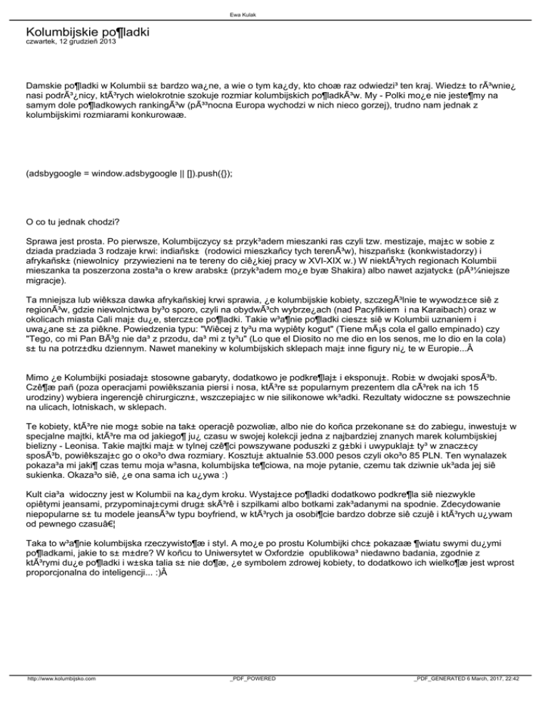 nasi podró¿nicy, których wielokrotnie szokuje rozmiar kolumbijskich po¶ladków. My - Polki mo¿e nie jeste¶my na