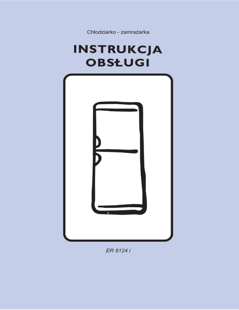 Ch³odziarko - zamra¿arka ER 8124 i WSKAZÓWKI DOTYCZA˛CE BEZPIECZEŃSTWA Przed przysta˛pieniem do eksploatacji urza˛dzenia należy dokładnie zapoznać sie˛ z instrukcja˛ obsługi. Instrukcje˛ obsługi należy zachować przez cały czas eksploatacji urza˛dzenia, a w przypadku odsta˛pienia urza˛dzenia innemu użytkownikowi należy pamie˛tać również o przekazaniu instrukcji obsługi. Zalecenia i wskazówki opracowaliśmy z myśla˛ o bezpiecznej i prawidłowej eksploatacji urza˛dzenia. Każdy użytkownik urza˛dzenia musi zapoznać sie˛ ze wskazówkami dotycza˛cymi bezpieczeństwa. ❐ Urza˛dzenie przeznaczone jest do użytkowania i obsługi wyła˛cznie przez osoby dorosłe. Dzieciom nie należy zezwalać na obsługe˛ urza˛dzenia i manipulowanie elementami steruja˛cymi. ❐ Wszelkie przeróbki instalacji elektrycznej w urza˛dzeniu moga˛ być dokonywane wyła˛cznie przez uprawnionego montera z autoryzowanego punktu serwisowego. ❐ Użytkownikowi nie wolno dokonywać żadnych przeróbek sprze˛tu, gdyż może to spowodować uszkodzenie sprze˛tu i cofnie˛cie gwarancji. ❐ Po podła˛czeniu urza˛dzenia do sieci elektrycznej należy sprawdzić, czy nie stoi ono na przewodzie zasilaja˛cym. ❐ Przed przysta˛pieniem do prac konserwacyjnych lub mycia należy odła˛czyć urza˛dzenie od źródła zasilania elektrycznego wyjmuja˛c wtyczke˛ z gniazdka lub wykre˛caja˛c zabezpieczenia. ❐ Urza˛dzenie przeznaczone jest wyła˛cznie do przechowywania artykułów żywnościowych na użytek gospodarstwa domowego. Użytkowanie urza˛dzenia niezgodnie z jego przeznaczeniem może być niebezpieczne i przyczynić sie˛ do uszkodzenia urza˛dzenia. ❐ Rozmrożone produkty nie powinny być ponownie zamrażane. ❐ Przechowywanie, wzgle˛dnie zamrażanie artykułów spożywczych powinno odbywać sie˛ według wskazówek producenta produktu. ❐ Podczas pracy urza˛dzenia skraplacz i spre˛żarka nagrzewaja˛ sie˛ i dlatego należy zwrócić szczególna˛ uwage˛ na zapewnienie swobodnego dopływu powietrza do tych elementów. Niedostateczna cyrkulacja powietrza może spowodować wadliwa˛ prace˛ agregatu lub nawet uszkodzenie sprze˛tu. Przy ustawianiu urza˛dzenia należy przestrzegać wskazówek zawartych w instrukcji obsługi. ❐ Urza˛dzenie powinno stać tyłem do ściany, a nagrzewaja˛ce sie˛ elementy powinny znajdować sie˛ z dala od źródeł ciepła. ❐ Przed przysta˛pieniem do mycia elementów wewne˛trznych i zewne˛trznych urza˛dzenia zarówno oraz przy wymianie żarówki, należy urza˛dzenie odła˛czyć od źródła zasilania elektrycznego. ❐ Podczas transportu olej znajduja˛cy sie˛ w spre˛żarce może dostać sie˛ do układu chłodniczego. Z tego wzgle˛du należy odczekać przynajmniej 2 godziny, aby olej ściekł ponownie do spre˛żarki i dopiero wówczas wła˛czyć urza˛dzenie do sieci elektrycznej. ❐ We wszystkich urza˛dzeniach chłodniczych elementy układu chłodniczego pokrywaja˛ sie˛ z biegiem czasu warstwa˛ szronu lub lodu. Warstwa ta usuwana jest automatycznie wzgl. re˛cznie - w zależności od modelu urza˛dzenia. ❐ Warstwy szronu nie wolno usuwać metalowymi przedmiotami, gdyż w ten sposób można uszkodzić urza˛dzenie. Do tego celu należy używać plastikowej łopatki be˛da˛cej na wyposażeniu urza˛dzenia. ❐ Do wyjmowania zamarznie˛tego pojemnika na lód nie używać przedmiotów o ostrych krawe˛dziach. ❐ Do przyśpieszenia procesu odmrażania nie wolno używać żadnych mechanicznych urza˛dzeń lub innych środków, z wyja˛tkiem tych, które zalecił producent sprze˛tu. ❐ W komorze zamrażarki lub zamrażalnika nie wolno przechowywać napojów gazowanych, musuja˛cych, gdyż moga˛ eksplodować powoduja˛c uszkodzenie urza˛dzenia. ❐ Nie należy spożywać lodów bezpośrednio po wyje˛ciu z zamrażarki, gdyż można spowodować uszkodzenie skóry. ❐ Urza˛dzenie jest cie˛żkie i elementy na tylnej ściance posiadaja˛ ostre zakończenia. Zaleca sie˛, aby do przesuwania urza˛dzenia zakładać re˛kawice ochronne. ❐ W przypadku wysta˛pienia zakłóceń w pracy sprze˛tu nie wolno dokonywać samodzielnie żadnych napraw, lecz zwrócić sie˛ do autoryzowanej placówki serwisowej. Do napraw stosuje sie˛ oryginalne cze˛ści zamienne. ❐ Urza˛dzenie powinno być ustawione z dala od źródeł ciepła (piece, grzejniki) oraz bezpośredniego oddziaływania promieni słonecznych. Ochrona środowiska Układ chłodniczy i izolacja urza˛dzenia nie zawieraja˛ gazu szkodliwego dla warstwy ozonowej. Należy jed- 5 nak zwracać uwage˛ na to , aby nie uszkodzić układu chłodniczego. Złomowanie urza˛dzenia należy wyko- Urza˛dzenie nie powinno być ustawione w pobliżu źródeł ciepła (np. w pobliżu pieca, kuchenki, grzejników) lub być nać zgodnie z przepisami ochrony środowiska. Materiały użyte do produkcji tego urza˛dzenia, oznaczone symbolem ( ) nadaja˛ sie˛ do powtórnego prze- narażone na bezpośrednie oddziaływanie promieni słonecznych. Wybieraja˛c miejsce ustawienia urza˛dzenia należy pamie˛tać o zapewnieniu prawidłowej wentylacji z każdej strony urza˛dzenia, gdyż ma to zasadnicze tworzenia. znaczenie dla bezawaryjnej pracy. Optymalna temperatura pomieszczenia, w którym pracuje urza˛dzenie, wy- S P I S T R E Ś C I nosi od +16oC do +32oC. W celu zabudowy urza˛dzenia należy posłużyć sie˛ wska- Instalacja zówkami zawartymi w niniejszej instrukcji obsługi. Uwaga ! ❐ Ustawienie ❐ Czyszczenie wne˛trza ❐ Wskazówki dotycza˛ce zabudowy ❐ Podła˛czenie do zasilania elektrycznego Dane techniczne ❐ Eksploatacja ❐ Wła˛czenie ❐ Szybkie mrożenie ❐ Lampka ostrzegawcza ❐ Zamrażanie żywności ❐ Wskazówki dotycza˛ce przechowywania żywności w zamrażarce ❐ Rozmrażanie produktów ❐ Przygotowywanie kostek lodu ❐ Regulacja temperatury chłodziarki ❐ Wskazówki dotycza˛ce przechowywania żywności w chłodziarce ❐ Zmiana ułożenia p