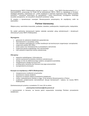 Partner biznesowy - REFA Wielkopolska