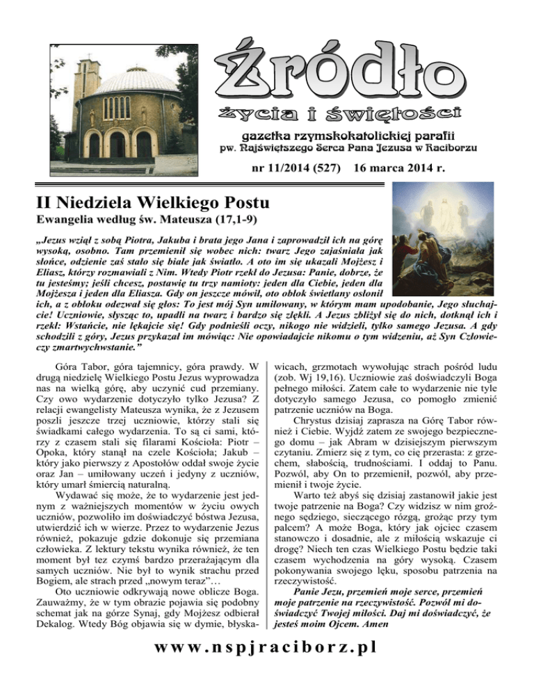 II Niedziela Wielkiego Postu www.nspjraciborz.pl