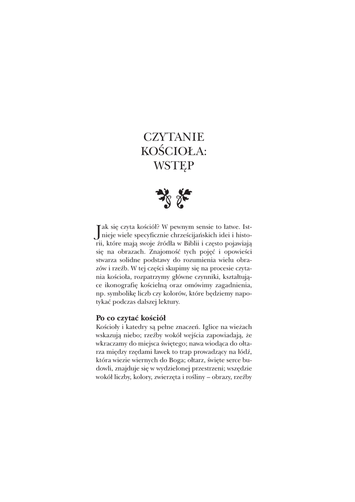 CZYTANIE KOŚCIOŁA: WSTĘP czyta kościół? W pewnym sensie to łatwe. IstJJakniejesięwiele specyficznie chrześcijańskich idei i histo- rii, które mają swoje źródła w Biblii i często pojawiają się na obrazach. Znajomość tych pojęć i opowieści stwarza solidne podstawy do rozumienia wielu obrazów i rzeźb. W tej części skupimy się na procesie czytania kościoła, rozpatrzymy główne czynniki, kształtujące ikonografię kościelną oraz omówimy zagadnienia, np. symbolikę liczb czy kolorów, które będziemy napotykać podczas dalszej lektury. Po co czytać kościół Kościoły i katedry są pełne znaczeń. Iglice na wieżach wskazują niebo; rzeźby wokół wejścia zapowiadają, że wkraczamy do miejsca świętego; nawa wiodąca do ołtarza między rzędami ławek to trap prowadzący na łódź, która wiezie wiernych do Boga; ołtarz, święte serce budowli, znajduje się w wydzielonej przestrzeni; wszędzie wokół liczby, kolory, zwierzęta i rośliny – obrazy, rzeźby 16 PRZEWODNIK PO SYMBOLICE KOŚCIOŁ A i witraże – wskazują na różne aspekty chrześcijańskiej nauki o Bogu. Kościoły mogą stanowić bogatą lekturę, zarówno gdy chodzi o znaczenie, jak i głębię treści. Kościoły mogą zawierać wiele przedstawień, ale jaki wszystkie te obrazy mają sens? Przyjęło się mówić, że dawniej obrazy w kościołach były przeznaczone dla ludzi, którzy nie umieli czytać, by oni również mogli zrozumieć naukę chrześcijańską. To wyjaśnienie kościoła jako „książki z opowieściami dla niepiśmiennych” jest demokratyczne i sugestywne, ale nie jestem pewny czy prawdziwe. Mało jest obrazów, jeżeli w ogóle istnieją, które można zrozumieć, gdy nie zna się przedstawionej na nich historii. O ile w różnych momentach dziejów osobiste odczytanie Biblii było dla wielu ludzi potrafiących czytać ważną sprawą, o tyle na ogół historie biblijne poznawano w dzieciństwie, raczej słuchając kazań w kościele niż przez lekturę. Piśmienni i niepiśmienni posiadali taką samą elementarną wiedzę na te tematy i jestem przekonany, że z obrazów w kościołach wieśniak miał nie więcej pożytku niż król. Przyjemność, jaką ludzie – wykształceni i niewykształceni – czerpią z „historii w obrazach”, jest podobna. Płynie ona z rozpoznania czegoś mniej czy bardziej znajomego, wynika z satysfakcji, jaką sprawia to, że wizerunki składają się na stare, dobrze znane historie, utwierdzające nas w tradycyjnym myśleniu. Obrazy uczą wszystkich po równo. Jak ujął to św. Tomasz z Akwinu: „człowiek nie może rozumować bez obrazów”. WSTĘP 17 Wiele symboli ma jednak niezupełnie demokratyczny charakter. Łacińskie i greckie słowa, litery wykute w kamieniu albo namalowane na oknach były zrozumiałe tylko dla ludzi z klasycznym wykształceniem. Mogły one sugerować tajemną wiedzę o Bogu, zrozumiałe były tylko dla tych, którzy umieli je odczytać, głównie dla wykształconych kleryków i ludzi zamożnych. Ale kiedy Kościół rzymskokatolicki zastąpił mszę łacińską mszami w językach narodowych, by wierni mogli pełniej uczestniczyć w tym, co się dzieje, niektórym przeszkadzało właśnie to zerwanie z tradycją; zabrakło im znajomych rytmów i kadencji starożytnego języka. Wierni mogli nie znać w ogóle języka łacińskiego, ale słowa mszy świętej znali dobrze. Użycie łaciny i greki stwarza bezpośrednią więź między Kościołem współczesnym i starożytnym, zwłaszcza w przypadku znaków i symboli, takich jak IHS czy chi-rho, stworzonych i przekazanych nam przez pierwszych chrześcijan. Symbol to coś, co reprezentuje, zastępuje lub wyraża coś innego. Trzy cechy symboli czynią je dziś równie ważnymi jak niegdyś. Po pierwsze, symbole mogą wyrażać pojęcia, których nie sposób wyrazić samym tylko językiem. Tak ma się sprawa zwłaszcza z pojęciami mistycznymi, do których, niemal z definicji, możemy się tylko przybliżyć, ale nie możemy pojąć ich w pełni. Możemy natomiast rozumieć i zaakceptować symbole, które wyrażają te pojęcia. Wziąwszy pod uwagę, że symbol jest próbą wyrażenia niewyrażalnego, tym samym może on być najlepszym sformułowaniem danego pojęcia, jakie w ogóle jesteśmy w stanie uzyskać. Po drugie, 18 PRZEWODNIK PO SYMBOLICE KOŚCIOŁ A symbole mogą pomóc przekroczyć luki pojęciowe tam, gdzie język po prostu sprawia zbyt wiele kłopotu. Kościół wschodni i zachodni podzieliły przed wiekami spory o ścisłe ujęcie relacji między osobami Trójcy Świętej, co doprowadziło do przyjęcia różnych wyznań wiary, między którymi istnieją minimalne różnice. W świecie symboli ani taki problem nie jest nieunikniony, ani taki podział konieczny. Wszyscy chrześcijanie mogą zaakceptować trójkąt jako symbol Trójcy Świętej. Po trzecie wreszcie, symbol może poruszać nas głębiej niż słowa. Przekonamy się, że to język symboli jest bardzo stary, po części zakorzeniony w praktykach i ideach poprzedzających chrześcijaństwo. Może przemawiać do nas w sposób ledwie dla nas zrozumiały. Świat symboli jest głęboki, bogaty i różnorodny. Choć kontekst może przemawiać za taką lub inną interpretacją, symbol może nieść wiele, nawet sprzecznych ze sobą znaczeń. Znaczenia mogą się przenikać i zabarwiać wzajemnie. Na przykład lew jest biblijnym symbolem zła, czyniącego spustoszenie i pożerającego grzeszników, ale jednocześnie jest symbolem Jezusa – potężnego króla wszechświata. Pierwszy symbol zabarwia swym znaczeniem drugi, np. Jezus jako król, który bez litości pożera zło. Należy też pamiętać, że świat symboli nie jest stały i niezmienny. Symbole omówione w tej książce mają pewne ogólnie przyjęte znaczenia, ale te znaczenia rozwijały się przez setki lub nawet tysiące lat i mamy wszelkie powody, żeby przypuszczać, że dalej będą ewoluować. Przedmioty budz