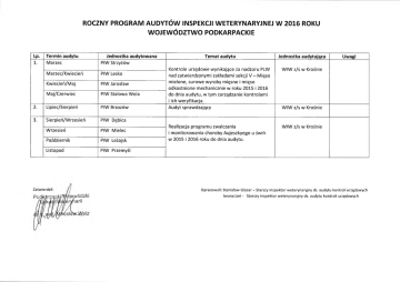 roczny program audytów inspekcji weterynaryjnej w 2016 roku