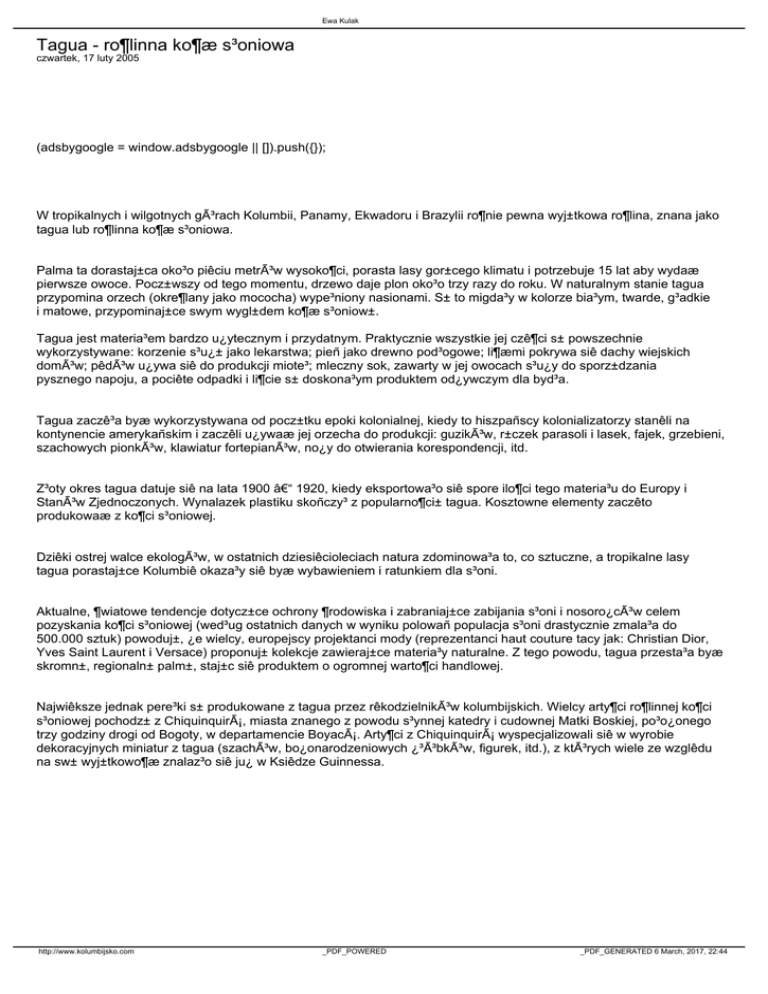 Tagua - ro¶linna ko¶æ s³oniowa