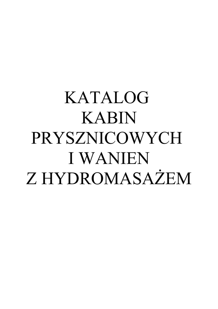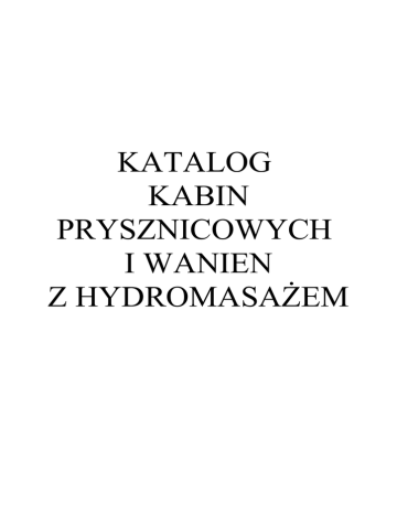 KATALOG KABIN PRYSZNICOWYCH I WANIEN Z HYDROMASAŻEM ADL-8301 WYPOSAŻENIE PODSTAWOWE: natrysk - natrysk sufitowy (typu "deszczownica"); - natrysk ręczny: 3 funkcje; hydromasaż - hydromasaż pleców; w skład systemu wchodzą: - 4 dysze zintegrowane z komfortowym oparciem (masaż części lędźwiowej kręgosłupa) - 4 regulowane dysze do masażu akupunkturowego pleców; hydromasaż stóp; przeszklenie / drzwi kabiny - szkło hartowane w kolorze grafitowym 5 mm; - drzwi rozsuwane na rolkach; - uszczelka magnetyczna domykająca drzwi; pozostałe elementy wyposażenia: - dezynfekcja ozonowa - elektroniczny panel sterujący; - odbiornik radiowy FM; - wyjście na telefon (możliwość odbierania rozmów w kabinie); - dekoracyjne oświetlenie LED w suficie (typu "gwiaździste niebo"); - dekoracyjne oświetlenie LED na panelu centralnym; - wentylator; - lustro; - siedzisko (max. dop. obciążenie wynosi 80kg); - regał z półkami na środki higieny; - 2 zespolone dozowniki substancji myjących; sauna parowa - najwyższa z dostępnych na rynku moc generatora pary - 3kW; - programator czasu pracy sauny; - programator temperatury pary; UWAGA ! Kabina z sauną parową powinna posiadać filtr na złączu zimnej wody ! ADL-8306 L WYMIARY: 120*80*215 ADL-8308 WYMIARY: 150*85*215 BRODZIK PEŁNI FUNKCJĘ WANNY Z HYDROMASAŻEM WYPOSAŻENIE PODSTAWOWE: natrysk - natrysk sufitowy (funkcja "deszczyku"); - natrysk ręczny regulowany w pionie; hydromasaż - 6 regulowanych dysz do hydromasażu pleców; - hydromasaż stóp; wanna - bateria wannowa; - komfortowy zagłówek jacuzzi - odrębna pompa wodna o wydajności 1,5 HP + 4 duże dysze (typu "turbo"); - odrębna pompa o wydajności 0,25 HP generująca strumień powietrza + 8 dysz; oświetlenie podwodne wanny przeszklenie / drzwi kabiny - szkło hartowane 5 mm o zabarwieniu grafitowym (przód i boki) i ciemnozielonym (tył); - drzwi rozsuwane na rolkach; - uszczelka magnetyczna domykająca drzwi; pozostałe elementy wyposażenia - elektroniczny panel sterujący; - odbiornik radiowy FM; - oświetlenie w suficie; - wentylator; - siedzisko; - dozownik mydła w płynie; - wejście audio (możliwość podłączenia zewnętrznego odbiornika CD); - wyjście na telefon (możliwość odbierania rozmów w kabinie); sauna + dezynfekcja ozonowa - najwyższa z dostępnych na rynku moc generatora pary - 3kW; - programator czasu pracy sauny; - programator temperatury pary; - możliwość umieszczenia substancji zapachowych (aromaterapia); ADL-8312 : 170*85*215 -WYMIARY Model: ADL-8318 o wymiarach: 100*100*210 Model: ADL-8320 o wymiarach: 90*90*210 Model: ADL-8316 o wymiarach: 135*85*210 Model; ADL-8015R o wymiarach: 125*85*215 Model: sw-310 o wymiarach: 150*150*60 Model: sw-338 o wymiarach: 155*155*75