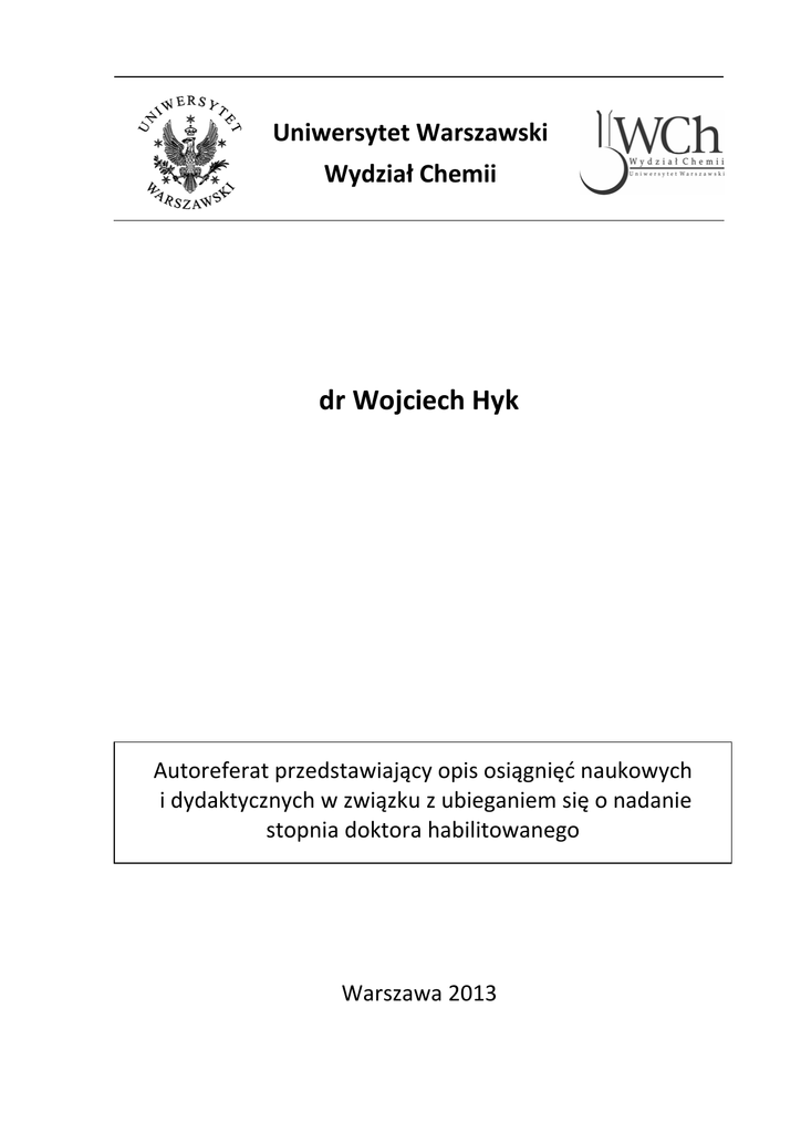 dr Wojciech Hyk - Wydział Chemii UW
