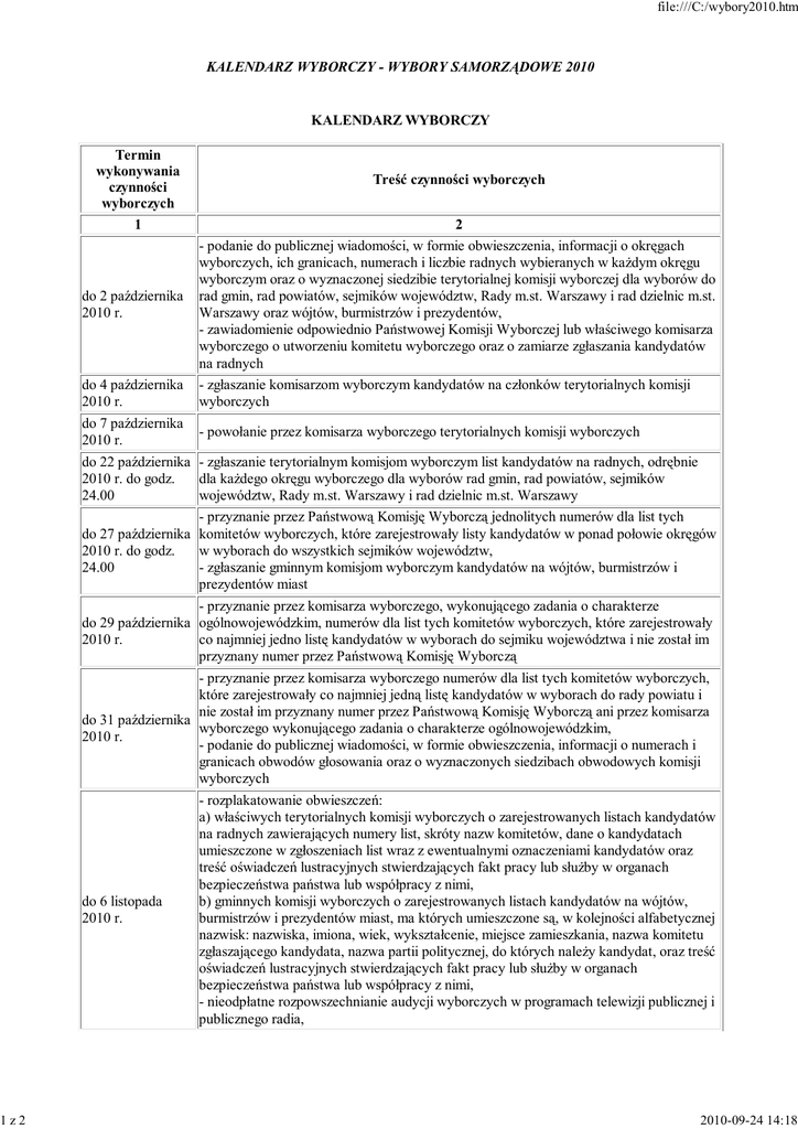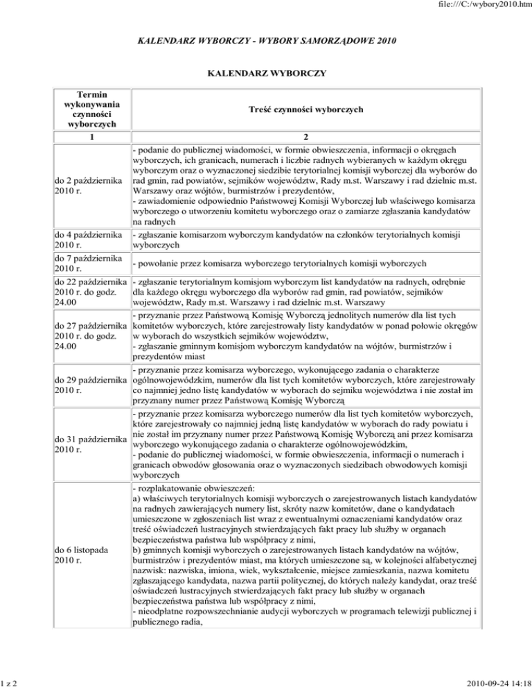 KALENDARZ WYBORCZY - WYBORY SAMORZĄDOWE 2010