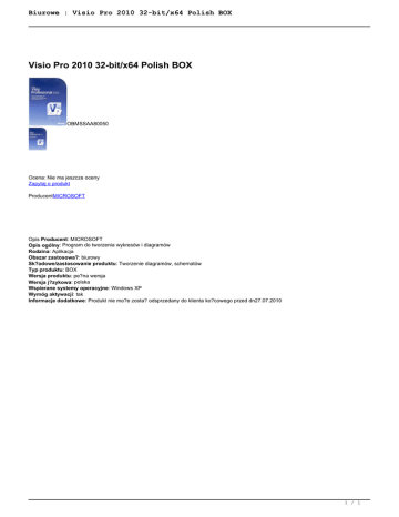 Biurowe : Visio Pro 2010 32-bit/x64 Polish BOX Visio Pro 2010 32-bit/x64 Polish BOX OBMSSAA80050 Ocena: Nie ma jeszcze oceny Zapytaj o produkt ProducentMICROSOFT Opis Producent: MICROSOFT Opis ogólny: Program do tworzenia wykresów i diagramów Rodzina: Aplikacja Obszar zastosowa?: biurowy Sk?adowe/zastosowanie produktu: Tworzenie diagramów, schematów Typ produktu: BOX Wersja produktu: pe?na wersja Wersja j?zykowa: polska Wspierane systemy operacyjne: Windows XP Wymóg aktywacji: tak Informacje dodatkowe: Produkt nie mo?e zosta? odsprzedany do klienta ko?cowego przed dn27.07.2010 1 / 1 Powered by TCPDF (www.tcpdf.org)