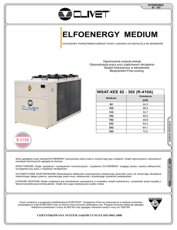 HYDRONIC 82 - 302 ® ELFOENERGY MEDIUM CHŁODZONY POWIETRZEM AGREGAT WODY LODOWEJ DO INSTALACJI NA ZEWNĄTRZ Ograniczenie zużycia energii Optymalizacja pracy przy częściowym obciążeniu Zespół hydrauliczny w standardzie Bezpośredni Free-cooling WSAT-XEE 82 - 302 (R-410A) Chłodzenie [kW] 82 24,3 102 28,2 122 33,7 162 40,0 182 45,9 222 54,4 262 64,1 302 72,2 ZASTĘPUJE: BT07F014PL-03 Wielkość EFEKTYWNOŚĆ Dzięki specjalnym rozwiązaniom konstrukcyjnym, urządzenia ELFOENERGY osiągają bardzo wysoką efektywność, szczególnie przy pracy z niepełnym obciążeniem. AUTOMATYCZNE DOSTOSOWANIE Rozbudowana elektronika automatycznie dostosowuje parametry pracy do zmiennego obciążenia chłodniczego całego systemu, optymalizując pobór mocy, efektywność i przedłużając żywotność podzespołów. ŁATWOŚĆ MONTAŻU Każde urządzenie jest standardowo wyposażone w kompletny zespół hydrauliczny i przechodzi przed wysyłką z fabryki kompleksową kontrolę jakości. Dzięki temu jego instalacja jest szybka i łatwa. Clivet uczestnicy w programie certyfikacyjnym EUROVENT. Urządzenia Clivet są umieszczone w wykazie produktów posiadających znak EUROVENT oraz na stronie www.eurovent-certification.com. Program Eurovent obejmuje agregaty chłodzone powietrzem o mocy do 600 kW oraz agregaty chłodzone wodą o mocy do 1500 kW. CERTYFIKOWANY SYSTEM JAKOŚCI UNI EN ISO 9001:2008 BT07F014PL-06 Seria agregatów wody lodowej ELFOENERGY reprezentuje ważny etap w rozwoju tego typu urządzeń. Dzięki wykorzystaniu najnowszych rozwiązań technicznych agregaty te cechuje: HYDRONIC 82 - 302 Komfort to prawo człowieka. Dbanie o środowisko naturalne to jego obowiązek. ELFOENERGY to zaprojektowane zgodnie z nową koncepcją urządzenia osiągające bardzo wysoką efektywność nie tylko przy maksymalnej wydajności ale również przy pracy z częściowym obciążeniem. Ze względu na dużą dobową i sezonową zmienność obciążeń cieplnych agregaty wody lodowej pracują przez znaczny okres czasu z niepełną wydajnością. Ilustruje to zamieszczony obok przykładowy wykres sezonowego obciążenia cieplnego budynków o charakterze wielofunkcyjnym (sklepy, biura, mieszkania) zlokalizowanych w okolicach Mediolanu. Jednostki ELFOENERGY zawsze zapewniają warunki maksymalnego komfortu, przy jednoczesnej bardzo wysokiej efektywności przez większość czasu pracy systemu, co w efekcie daje znaczące oszczędności w zużyciu energii elektrycznej. Odzwierciedla to politykę firmy CLIVET polegającą na oferowaniu rozwiązań umożliwiających zapewnienie dobrego samopoczucia ludzi i korzyści dla środowiska. Obciążenie urządzenia SEZONOWE OBCIĄŻENIE CIEPLNE Marzec Kwiecień Maj Czerwiec Lipiec Sierpień Wrzesień Październik WIĘCEJ SPRĘŻAREK SCROLL O WYŻSZEJ SPRAWNOŚCI W TAKIM SAMYM OBIEGU CHŁODNICZYM sprężarka Pojedynczy wymiennik Kluczowym założeniem leżącym u podstaw podejścia przyjętego przy projektowaniu serii ELFOENERGY jest zastosowanie w pojedynczym obiegu chłodniczym zespołu sprężarek SCROLL zamiast tradycyjnych rozdzielonych obiegów. Dodatkowo zastosowanie sprężarek o różnej mocy umożliwia zwiększenie liczby stopni regulacji i znacznie bardziej płynne dostosowanie do chwilowego obciążenia. Rozbudowana automatyka urządzeń ELFOENERGY optymalizuje sekwencje załączania i wyrównuje cykle pracy sprężarek w celu uzyskania maksymalnych korzyści. sprężarka Parownik WYSOKA EFEKTYWNOŚĆ PRZY CZĘŚCIOWYM OBCIĄŻENIU Przez 90% czasu obciążenie mniejsze niż 60% Procentowy czas pracy BT07F014PL-06 Agregat wody lodowej jest wymiarowany na podstawie maksymalnego obliczeniowego obciążenia cieplnego projektowanego systemu klimatyzacyjnego. W praktyce jednak, warunki maksymalnego obciążenia występują tylko w niewielkim procencie całkowitego czasu pracy, natomiast w pozostałym okresie agregat pracuje z niepełną wydajnością. Badania przeprowadzone w różnego rodzaju budynkach wykazały, że przeciętnie przez 90% całkowitego czasu pracy obciążenie cieplne nie przekracza 60% wartości maksymalnej. Z tego względu, sprawność osiągana przy częściowym obciążeniu jest kluczowym parametrem, który należy uwzględnić przy doborze agregatu wody lodowej. Przez 60% czasu obciążenie mniejsze niż 30% Obciążenie procentowe 2 HYDRONIC 82 - 302 Elektroniczny sterownik i specjalne rozwiązania konstrukcyjne podnoszą sprawność termodynamiczną agregatów ELFOENERGY. W celu osiągnięcia maksymalnej efektywności sterownik załącza sprężarki w zależności od najkorzystniejszego stosunku powierzchni wymiany ciepła, dzięki czemu temperatury skraplania i odparowania są zawsze na optymalnym poziomie. Wykres obok przedstawia efektywność (EER) agregatu ELFOENERGY w porównaniu z jednostką tradycyjną dla typowego dnia w lecie. Wyraźnie widać, że sprawność ELFOENERGY jest praktycznie zawsze wyższa a w godzinach, gdy obciążenie cieplne jest obniżone nawet ponad dwukrotnie. Standardowa Jednostka średni EER ELFOEnergy średni EER miesięczne porównanie wskaźnika EER Marzec Kwiecień Maj Czerwiec Lipiec Sierpień Wrzesień Październik NISKIE KOSZTY EKSPLOATACJI Tygodniowe zużycie energii elektrycznej (dla budynku biurowego w Mediolanie) Jednostka tradycyjna Je dn os tk a tra dy cy jn a Energia elektryczna (kWh) Marzec Kwiecień Maj Czerwiec Lipiec Sierpień Wrzesień Październik W przypadku układu z jednostką o mocy 34 kW, roczne oszczędności zużycia energii uzyskiwane dzięki zastosowaniu ELFOENERGY wynoszą około 3000 kWh, co oznacza z kolei oszczędności kosztów rzędu 500 EUR i 590 kg mniej spalonego paliwa. BT07F014PL-06 Dzięk i wspomnianym zaletom jednostki ELFOEnergy charakteryzują się przez większość czasu pracy znacznie wyższą efek t ywności ą ni ż je dn ostk i tradycyjne. Roczne zużycie energii elektrycznej przez ELFOEnergy w porównaniu z pracującym w takiej samej instalacji konwencjonalnym