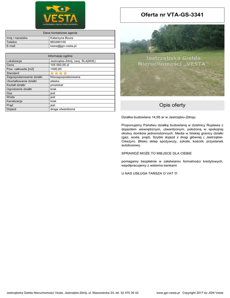 Oferta nr VTA-GS-3341 - Jastrzębska Giełda Nieruchomości Vesta