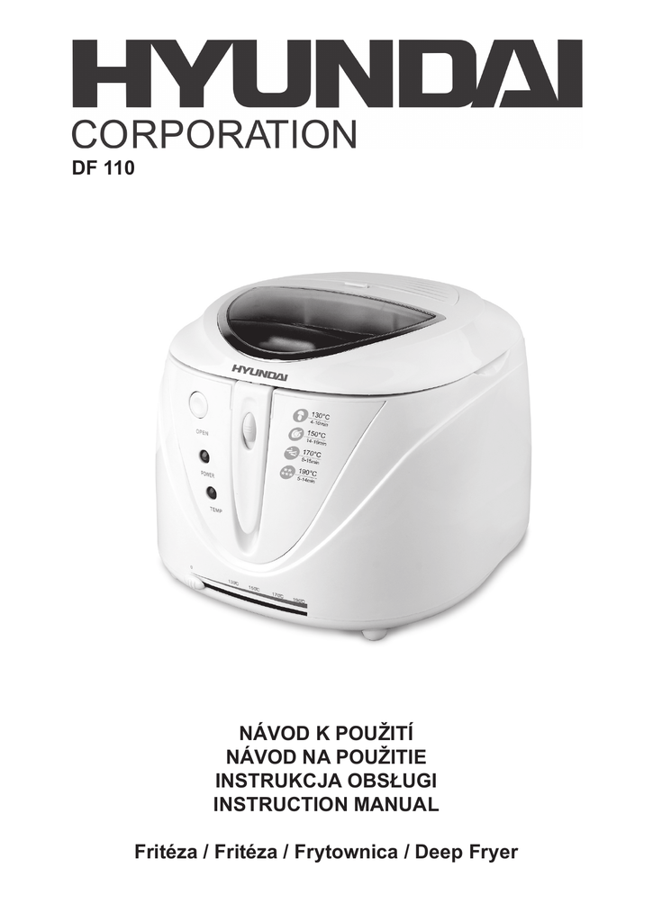 DF 110 NÁVOD K POUŽITÍ NÁVOD NA POUŽITIE INSTRUKCJA OBSŁUGI INSTRUCTION MANUAL Fritéza / Fritéza / Frytownica / Deep Fryer Vážený zákazníku, děkujeme Vám za zakoupení našeho produktu. Před uvedením tohoto přístroje do provozu si velmi pozorně přečtěte návod k obsluze a tento návod spolu se záručním listem, pokladním dokladem a podle možností i s obalem a vnitřním obsahem obalu dobře uschovejte. Všeobecné bezpečnostní pokyny • Používejte tento přístroj výlučně pro soukromou potřebu a pro stanovené účely. Tento přístroj není určen pro komerční použití. Nepoužívejte jej v otevřeném prostoru (s výjimkou přístrojů, které jsou podmíněné používání venku určeny). Chraňte jej před horkem, přímým slunečním zářením, vlhkostí (v žádném případě jej neponořujte do kapalin) a stykem s ostrými hranami. Nepoužívejte přístroj v případě, že máte vlhké ruce. Jestliže dojde k navlhčení nebo namočení přístroje, okamžitě vytáhněte zástrčku ze zásuvky. Vyvarujte se styku s vodou. • Přístroj vypněte a vždy vytáhněte zástrčku ze zásuvky (tahejte jen za zástrčku, nikdy ne za kabel), jestliže nebudete přístroj používat, chcete-li namontovat příslušenství, přístroj vyčistit nebo v případě poruchy. • Přístroj nesmí zůstat v provozu bez dozoru. Jestliže musíte pracoviště opustit, vždy přístroj vypněte, resp. vytáhněte zástrčku ze zásuvky (vždy tahejte za zástrčku, nikdy ne za kabel). • Abyste ochránili děti před riziky spojenými s elektrickými přístroji, postarejte se o to, aby kabel nevisel dolů a děti na přístroj nedosáhly. • Pravidelně kontrolujte přístroj a přívodní kabel z hlediska poškození. Jestliže přístroj vykazuje nějakou závadu, neuvádějte jej do provozu. • Neopravujte přístroj vlastními silami, nýbrž vyhledejte autorizovaného opraváře. Abyste eliminovali rizika, nechejte poškozený přívodní kabel nahradit kabelem se stejnými hodnotami a to jen výrobcem, naším servisem pro zákazníky nebo jinou kvalifikovanou osobou. • Používejte jen originální příslušenství. • Respektujte, prosím, následující „Speciální bezpečnostní pokyny pro tento přístroj“. Speciální bezpečnostní pokyny pro tento přístroj • Nedotýkejte se horkých povrchů, používejte rukojeti nebo držadla. • Abyste se chránili před úrazem elektrickým proudem, neponořujte přístroj, síťovou šňůru nebo zástrčky do vody nebo jiné kapaliny. • Pokud je přístroj používán v blízkosti dětí, je vyžadována zvýšená pozornost. • Pokud přístroj nepoužíváte nebo před čištěním, odpojte jej ze zásuvky. Před vkládáním nebo vyjímáním částí a před čištěním ponechte přístroj vychladnout. • Nenechávejte síťovou šňůru viset přes hrany desky stolu nebo pracovní plochy nebo dotýkat se horkých ploch. • Nepokládejte přístroj na horké plynové nebo elektrická topidla nebo do jejich blízkosti, nebo do rozehřáté trouby. • Přenášení fritézy s horkým olejem věnujte vysokou pozornost. • Před odpojením posuňte ovladač do polohy „0“, a pak vytáhněte zástrčku ze zásuvky. • Nepoužívejte přístroj pro jiné než určené použití. • Tento spotřebič není určen pro používání osobami (včetně dětí), jimž fyzická, smyslová, nebo mentální neschopnost či nedostatek zkušeností a znalostí zabraňuje v bezpečném používání spotřebiče, pokud na ně nebude dohlíženo nebo pokud nebyly instruovány ohledně použití spotřebiče osobou zodpovědnou za jejich bezpečnost. • Na děti by se mělo dohlížet, aby se zajistilo, že si nebudou se spotřebičem hrát. Tyto pokyny uchovejte Přístroj je určen POUZE PRO DOMÁCÍ POUŽITÍ. Uvnitř přístroje nejsou žádné součásti, které by mohl opravit uživatel. Nepokoušejte se přístroj opravovat. VAROVÁNÍ: Nepoužívejte prodlužovací šňůru. CZ - CZ Popis ovládacích prvků P1 P2 P3 P4 P5 P6 P7 Odnímatelné víko Průhledové okénko Odnímatelný kryt filtru Pachový filtr Fritovací koš Vnější obal Vyjímatelný zásobník/nádoba na olej P8 P9 P10 P11 P12 P13 Uvolňovací zámek rukojeti Tlačítko pro uvolnění víka Sklápěcí rukojeť Kontrolka provozu POWER Kontrolka ohřevu TEMP Nastavitelný termostat / hlavní vypínač Příprava fritézy pro použití Zkontrolujte, zda je fritéza odpojena ze zásuvky. FRITOVACÍ KOŠ umyjte v horké mýdlové vodě a vytřete do sucha. Hadříkem navlhčeným v mýdlovém roztoku otřete vnitřní a vnější části fritézy a víka. Poté vytřete do sucha. Fritéza je nyní připravena k použití. UPOZORNĚNÍ: Fritézu, šňůru nebo zástrčky neponořujte do vody. UPOZORNĚNÍ: Před použitím odstraňte z fritovacího koše obalové plasty. Používání fritézy POZNÁMKA: Nikdy fritézu nezapínejte, pokud je prázdný ZÁSOBNÍK NA OLEJ. Fritézu používejte vždy na plochém, tepelně odolném povrchu. 1) Odjistěte VÍKO stisknutím TLAČÍTKA PRO UVOLNĚNÍ VÍKA. 2) Pro vyjmutí FRITOVACÍHO KOŠE zatáhněte za RUKOJEŤ, až zacvakne do vodorovné polohy . Do ZÁSOBNÍKU NA OLEJ nalijte přibližně 8 hrnků fritovacího oleje. Zkontrolujte, zda hladina oleje dosahuje značky „MAX“. CZ - 3) Trochou oleje potřete vnitřní část PRŮHLEDOVÉHO OKÉNKA. Tím zabráníte kondenzaci, která brání v průhledu. 4) FRITOVACÍ KOŠ vložte do fritézy a ponořte do oleje. RUKOJEŤ uvolněte posunutím UVOLŇOVACÍHO ZÁMKU RUKOJETI směrem k sobě a sklopte rukojeť směrem k vnější části fritézy. Uzavřete VÍKO. UPOZORNĚNÍ: Při vyjímání potravin ponechejte rukojeť v uzamknuté poloze. 5) Zkontrolujte, zda je fritéza vypnutá a připojte síťovou šňůru do elektrické zásuvky. Fritézu zapnete posunutím NASTAVITELNÉHO TERMOSTATU na požadovanou tepl