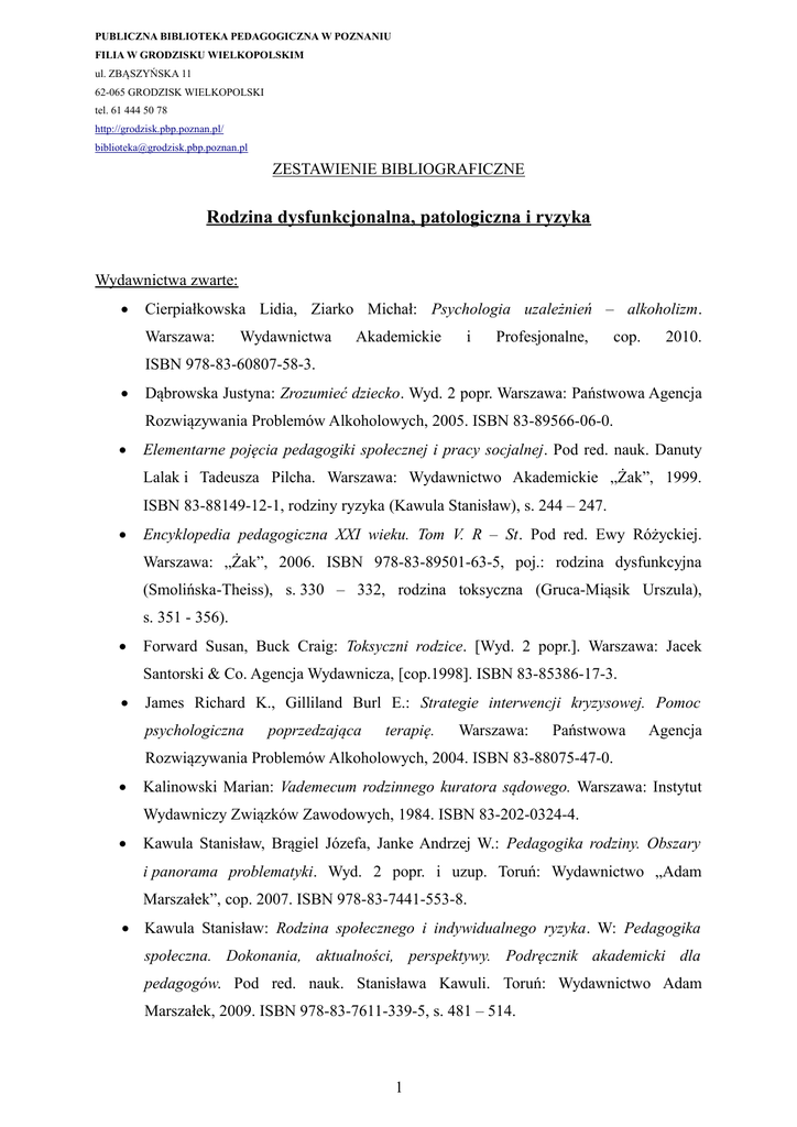 Rodzina dysfunkcjonalna Zestawienie bibliograficzne