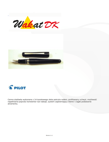 Cenna stalówka wykonana z 14 karatowego złota pokryta rodem, profilowany uchwyt, możliwość napełniania poprzez konwentor lub naboje, system zapewniający równe i ciągłe podawanie atramentu. Strona 1 z 1