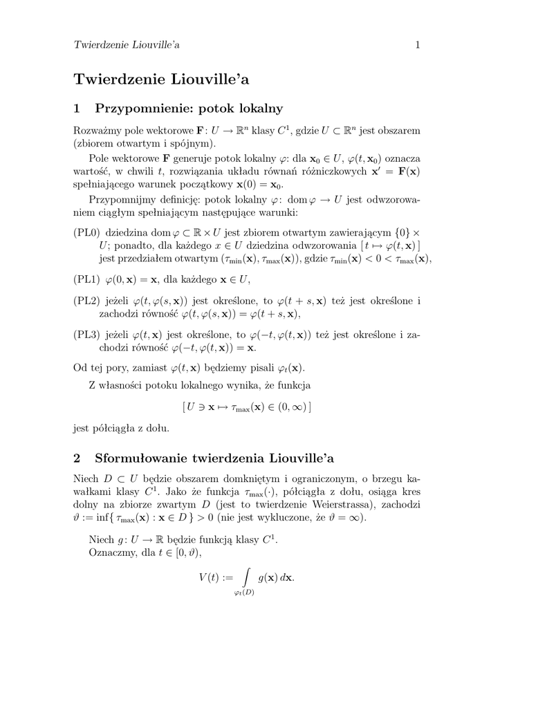 Sformułowanie twierdzenia Liouville’a