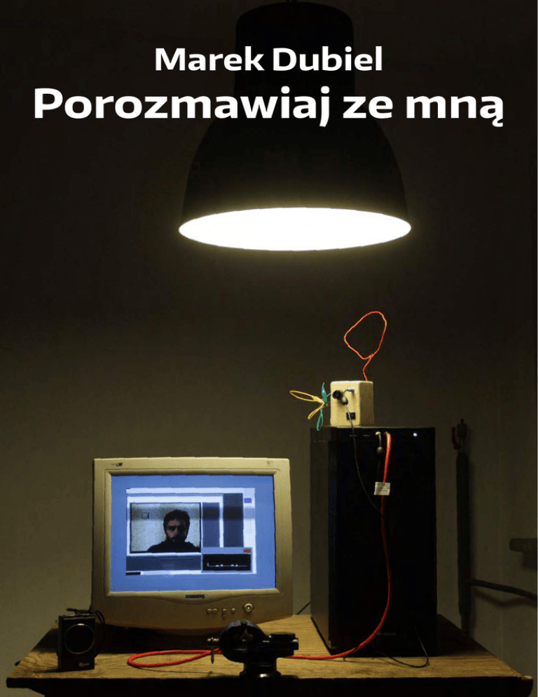 Marek Dubiel Porozmawiaj ze mną Porozmawiaj ze mną Instalacja składa się z kineskopowego monitora i komputera, mikrofonu, nadajnika radiowego małej mocy i kieszonkowego radia. Całość na pierwszy rzut oka przypomina standardowy domowy czy biurowy komputer typu desktop, jednak nie posiada on klawiatury ani myszki. Jedynym sposobem na interakcję jest mikrofon. Na ekranie zapętlone jest video twarzy, na tle okien abstrakcyjnego systemu operacyjnego staje się oknem video chatu. Jest ono jednak tak pokryte szumami że twarz jest nierozpoznawalna. Szumy tracą na intensywności tylko w momencie wypowiadania przez "maszynę" zdań. Jej głos dobiega z małego kieszonkowego radia. Przez zastosowanie drogi radiowej głos ten jest zniekształcony, a sam odbiorca jest w stanie zakłócić odbiór wchodząc w zasięg anteny, lub wnosząc ze sobą np. telefon komórkowy. Maszyna pragnie rozmowy. Jej jedynym zmysłem jest słuch, czeka na to aż ktoś do niej się zwróci. Wtedy stara się odpowiadać. Na początku jest to proste przedrzeźnianie, jednak gdy nauczy się kilku "zdań" zaczyna odpowiadać innymi, wyuczonymi sekwencjami dzwięków. Te dźwięki są tym bardziej rozpoznawalne im więcej rozmawia. Zostawiona sama sobie będzie co pewien czas "nawoływać". Lecz bez żadnego odzewu ze strony człowieka jej głos stanie się coraz bardziej zniekształcony i niezrozumiały. Moim zamysłem było stworzenie maszyny zdolnej do jednego uczucia - samotności. Instalacja reaguje na obecność człowieka i stara się z nim rozmawiać. Jej słownik jest niewielki, a pamięć krótka, co podkreśla pewną jej bezradność. Bez człowieka milczy, słychać jedynie puls szumów, jakby bicie serca. Znak że jest i czeka, nasłuchuje. Pragnie usłyszeć człowieka. Tworząc tę instalację chciałem wyizolować to, czego w czasie komunikatorów internetowych boimy się najbardziej, czyli samotność. Walczymy o uwagę, pragnąc kontaktu, a często stajemy się tak samotni jak moja maszyna. To pewnego rodzaju “bezpieczny eksperyment”, możemy studiować samotność, jedno z bardziej bolesnych uczuć w pewnej symulacji, w odniesieniu do pozbawionej jednak świadomości maszyny. Instalacja działa w oparciu o programy stworzone w środowisku Processing i Max/Msp/Jitter. Pierwszy odpowiada za obraz, drugi za dźwięk. Komunikują się ze sobą protokołem osc. Dźwięk jest cały czas wychwytywany przez mikrofon, wykrycie wyższego sygnału niż ustalony graniczny powoduje nagranie dźwięku do jednego z buforów. Te bufory służą jako "słownik" maszyny. By w tym systemie nie pominąć pierwszych głosek wysłuchanego przez maszynę zdania, dźwięk jest cały czas nagrywany w 3 sekundowej pętli, które to są dołączane do nagrania w momencie wykrycia wyższego poziomu natężenia dźwięku. Obraz jest sprzężony zarówno z dźwiękiem nagrywanym, jak i odtwarzanym. Poziom dźwięku jest wyświetlany na ekranie, monitorując "puls" maszyny. Dźwięk odtwarzany poza tym steruje poziomem szumów na ekranie. Dźwięk następnie jest przekazywany do miniaturowego nadajnika bardzo małej mocy. Wykorzystywane pasmo to ok 67 Mhz. Odtwarza je małe kieszonkowe radyjko. To pozwala na uzyskanie dodatkowych szumów i zakłóceń bardzo podatnych na zmiany pola elektronagnetycznego.