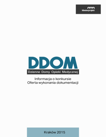 DDOM Dzienne Domy Opieki Medycznej Informacja o konkursie Oferta wykonania dokumentacji Kraków 2015 DDOM Dzienne Domy Opieki Medycznej Uwaga konkurs! Szanowni Państwo. Informujemy, że Ministerstwo Zdrowia ogłosiło konkurs na tworzenie i prowadzenie dziennych domów opieki medycznej (w skrócie DDOM-ów). Nabór będzie trwał 2 miesiące: od 31 sierpnia 2015 r. do 30 października 2015 r. Do rozdysponowania przeznaczono kwotę 40 mln złotych. W konkursie startować mogą wszystkie podmioty lecznicze, które mają umowę z Oddziałem Wojewódzkim Narodowego Funduszu Zdrowia i działają co najmniej od 1 stycznia 2012 r. Premiowane będą podmioty, które świadczą usługi w zakresie podstawowej opieki zdrowotnej (otrzymają one 40 dodatkowych punktów). Wnioski można składać samodzielnie lub w partnerstwie. W skład konsorcjum mogą wejść dowolne podmioty (maks. 3), np. organizacje pozarządowe, jednostki samorządu terytorialnego i ich jednostki organizacyjne, podmioty świadczące usługi na rzecz osób zależnych i niesamodzielnych. Serdecznie zapraszamy Państwa do zapoznania się z podstawowymi informacjami o konkursie, oraz współpracy przy sporządzaniu dokumentacji aplikacyjnej. Z poważaniem Zespół doradczy firmy Masterprojekt S.C. www.masterprojekt.pl tel: (12) 361 2380, fax: (12) 444 7849 strona 2 DDOM Dzienne Domy Opieki Medycznej Najważniejsze informacje o konkursie Kto może ubiegać się o środki? Co to są DDOM-y? Beneficjent: podmioty lecznicze prowadzące działalność leczniczą w ramach kontraktu z NFZ. Podmioty nie mogą mieć zaległości wobec ZUS i US. W przypadku NZOZ – nawet tych w partnerstwie – mogą aplikować, jeśli obrót za poprzedni rok był wyższy niż nakłady w tym roku realizacji inwestycji, kiedy nakłady są wyższe. Dzienne Domy Opieki Medycznej to nowa forma opieki nad osobami niesamodzielnymi, które wymagają świadczeń pielęgnacyjnych, opiekuńczych i rehabilitacyjnych oraz kontynuacji leczenia, ale nie wymagają hospitalizacji w oddziale szpitalnym. W szczególności działania skierowane będą do osób powyżej 65 roku życia. Czyli np. partnerstwo SPZOZ z NZOZ– brane pod uwagę są obroty NZOZ za 2014 tok. Aplikować mogą te NZOZy, które miały obrót za 2014 rok wyższy niż ok. 520 000 zł (np. koszty projektu 1 roku: 490 000 zł, koszty w 2 roku: 520 000 zł). W przypadku projektów o niższej wartości – kwota obrotów w 2014 roku – odpowiednio niższa. Domy będą funkcjonować we wszystkie dni robocze, minimum przez 8 godzin dziennie. Pacjenci będą korzystać z następujących świadczeń: • opieki pielęgniarskiej; • doradztwa w doborze odpowiednich wyrobów medycznych; • usprawnień ruchowych; • stymulacji procesów poznawczych; • terapii zajęciowej; • zajęć dodatkowych pomiędzy świadczeniami zdrowotnymi. Finansowanie projektu Maksymalne dofinansowanie projektu ze środków UE i budżetu państwa to 1 mln zł, co może stanowić maks. 97% wartości projektu. Projekty mogą być realizowane od 1 kwietnia 2016r. i nie mogą trwać krócej niż 24 miesiące. Pierwsi pacjenci muszą zostać przyjęci nie później niż 6 miesięcy od rozpoczęcia projektu. Okres trwałości projektu wynosi zaś min. 3 lata. Działania możliwe do sfinansowania to: • Dostosowanie i doposażenie w sprzęt pomieszczeń; • Prowadzenie Dziennego Domu Opieki Medycznej; • Działania edukacyjne dotyczące opieki nad osobą niesamodzielną; Pacjenci będą mieli zapewnione wyżywienie odpowiednie do ich stanu zdrowia, a w razie potrzeby bezpłatny transport z domu do placówki i z powrotem. Dodatkowo w ramach DDOM-ów będą prowadzone działania edukacyjne przygotowujące rodziny i opiekunów pacjenta do kontynuacji opieki. Dzienne Domy Opieki Medycznej to projekt pilotażowy. Planowane jest otworzenie 40 takich domów w całej Polsce. Każda placówka ma gwarantować od 10 do 15 miejsc dla pacjentów. Zakładana długość pobytu pacjenta w DDOM-ie wynosi od 30 do 120 dni roboczych. www.masterprojekt.pl tel: (12) 361 2380, fax: (12) 444 7849 strona 3 DDOM Dzienne Domy Opieki Medycznej Oferta wykonania dokumentacji konkursowej Proponujemy Państwu przygotowanie dokumentacji aplikacyjnej umożliwiającej ubieganie się o dotacje na projekt utworzenia Dziennego Domu Opieki Medycznej w ramach Działania 5.2 Programu Operacyjnego Wiedza Edukacja Rozwój. Oferta obejmuje: • Przygotowanie wniosku aplikacyjnego; • Przygotowanie listy załączników oraz wykonanie wybranych załączników; • Wydruki przygotowanych dokumentów, odpowiednie opisanie, oklejenie teczek, segregatorów, płyt CD; • Na wezwanie Instytucji Zarządzającej - bezpłatne wprowadzenie poprawek na wszystkich etapach oceny; • Prowadzenie projektu na platformie elektronicznej online (komunikacja, współpraca, repozytorium plików). Cena: • 6000 zł netto + 23% VAT za przygotowanie dokumentacji - płatne po przekazaniu dokumentacji (wniosek + pozostałe załączniki); • 6000 zł netto + 23% VAT premii za sukces płatnej jedynie w przypadku wybrania projektu do dofinansowania. danych do projektu; • Wprowadzenie poprawek do wniosku po konsultacjach z Klientem - 5 dni od otrzymania uwag; Forma współpracy: • Współpraca odbywa się poprzez udostępnianą Klientom aplikację do zarządzania projektami. Aplikacja dostępna na komputerach i urządzeniach mobilnych (terminy, zadania, repozytorium plików, współpraca grupowa); • Wersję konsultacyjną otrzymacie Państwo w formie elektronicznej; • Wersję finalną otrzymacie w formie papierowej (ilość sztuk wymagana przez instytucję prowadzącą konkurs + jedna archiwalna wersja dla Zleceniodawcy). Wersja finalna dostępna będzie także zawsze w formie elektronicznej poprzez system zarządzania projektami; • Poprawki na etapie oceny formalnej i merytorycznej otrzymacie Państwo w wersji elektronicznej; Oferta obowiązuje do 1 października 2015. UWAGA RABAT! Przy zamów