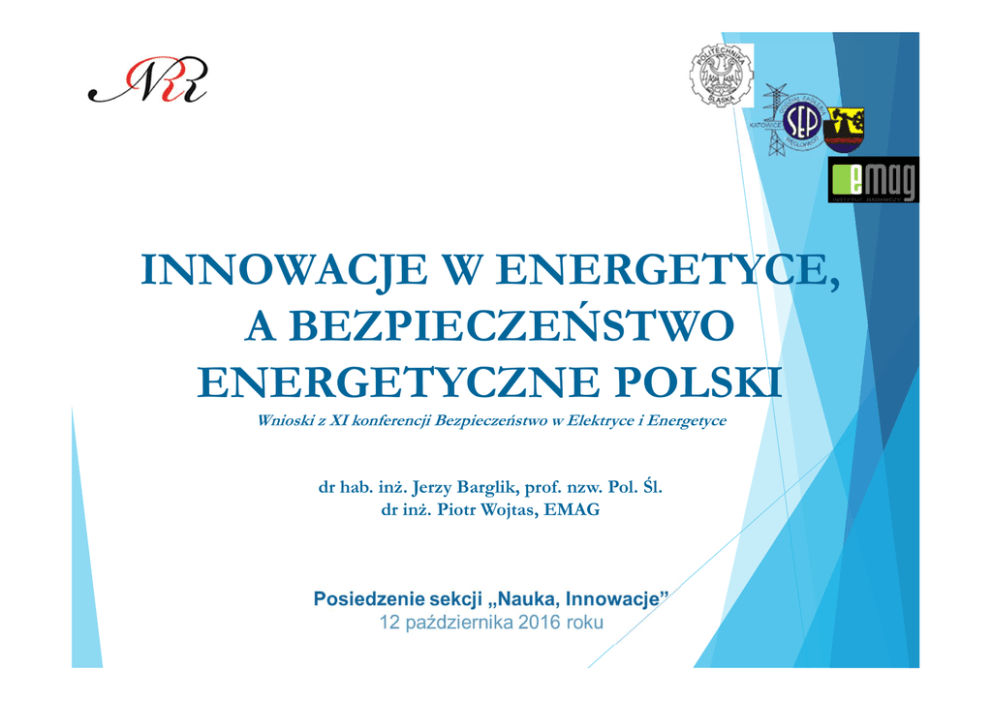 INNOWACJE W ENERGETYCE, A BEZPIECZEŃSTWO ENERGETYCZNE POLSKI Wnioski z XI konferencji Bezpieczeństwo w Elektryce i Energetyce dr hab. inż. Jerzy Barglik, prof. nzw. Pol. Śl. dr inż. Piotr Wojtas, EMAG CYKL KONFERENCJI NA TEMAT BEZPIECZEŃSTWA W ELEKTRYCE I ENERGETYCE Podczas VIII Katowickich Dni Elektryki (14 – 15 czerwca 2016 roku) organizowanych w nowym Międzynarodowym Centrum Konferencyjnym w Katowicach odbyła się XI Konferencja pn. „Bezpieczeństwo w Elektryce i Energetyce”. TEMATYKA SESJI Sesja I: Nowe technologie i bezpieczeństwo w przemyśle prowadzenie – Artur Kozłowski Instytut Technik Innowacyjnych EMAG Sesja II: Energetyka konwencjonalna – budować nowe źródła czy modernizować stare? prowadzenie – Rafał Kobyłecki, Politechnika Częstochowska Sesja III: Bezpieczeństwo elektryczne w budownictwie prowadzenie – Bogumił Dudek, Polski Komitet Bezpieczeństwa w Elektryce SEP Wygłoszono 18 referatów. Udział wzięło ponad 300 osób. PANEL DYSKUSYJNY W panelu dyskusyjnym: „Energetyka oparta na węglu, gazie, OZE lub na energii jądrowej?” zorganizowanym pomiędzy Sesją I i Sesją II udział wzięli zaproszeni specjaliści i eksperci, a wśród nich: Herbert L. Gabryś (Krajowa Izba Gospodarcza) Jacek Janas (Tauron Wytwarzanie) Zenon Panicz (Śląska Okręgowa Izba Inżynierów Budownictwa) Jan Ryszard Kurylczyk (Elektrobudowa SA) Piotr Mocek (Stowarzyszenie Inżynierów i Techników Górnictwa) Paweł Sowa (Politechnika Śląska) Jerzy Trzeszczyński (Pro Novum Sp. z o.o.) Ziemowit Słomczyński (SBB ENERGY) Zaproszony do udziału w debacie, prof. Bolesław Pochopień przekazał wypowiedź na piśmie. Moderatorem debaty był Tomasz Kołakowski (miesięcznik Energetyka). PORTAL ŚLĄSKIE FORUM ENERGII Prace Zespołu ds. oceny polityki energetycznej działającego przy OZW SEP Wnioski z konferencji : wygłoszone referaty, dyskusja, opinie wyrażone podczas debaty eksperckiej Wpisy na portalu Śląskie Forum Energii , Opinie nadesłane przez uczestników konferencji upoważniły do sformułowania szeregu wniosków, z których najważniejsze przedstawiamy w dalszej części prezentacji WIELE ZALEŻY OD ENERGETYKI Pomyślna przyszłość polskiej gospodarki w myśl założeń planu odpowiedzialnego rozwoju wicepremiera Morawieckiego zależy w znacznym stopniu od skutecznego rozwiązania problemów i dylematów polskiej energetyki. W ostatnim czasie, w energetyce polskiej skumulowało się wiele problemów. Zmiany polityczne stwarzają szansę na ich identyfikację i rozwiązanie w szeroko pojętym interesie polskiej energetyki i naszego Państwa. POLITYKA ENERGETYCZNA Pierwszoplanowe znaczenie ma opracowanie polityki energetycznej, poprzedzone diagnozą aktualnej sytuacji. Docierające z instytucji rządowych informacje zdają się sugerować, że będzie to polityka oparta o klasyczne zasady bezpieczeństwa energetycznego: jak najwięcej energii elektrycznej z własnych źródeł, przy akceptowalnych cenach, wytwarzanej w ramach miksu energetycznego z dostępnych w Polsce źródeł, także z odnawialnych źródeł energii i w przyszłości w oparciu o energetykę jądrową, w możliwie największym stopniu zgodnym z polityką klimatyczną Unii Europejskiej. WIZJA I PLANY SZCZEGÓŁOWE Nowa polityka energetyczna powinna zawierać: - wizję Krajowego Systemu Energetycznego do 2050 roku, - szczegółowy długoterminowy plan działań w okresie do 2030 roku. - plan krótkoterminowy na najbliższe 5 lat obejmujący między innymi zapewnienie dostawy węgla z polskich kopalń po konkurencyjnych cenach oraz przywrócenie rentowności elektrowni w stopniu zapewniającym możliwość utrzymania wysokiej dyspozycyjności wytwarzania, modernizacji zwłaszcza w zakresie spełnienia wymagań BAT Conclusions . ISTNIEJĄCY MAJĄTEK PRODUKCYJNY Zanim powstanie strategia w zakresie inwestycji w nowe źródła wytwarzania i pojawią się ekonomiczne możliwości inwestowania należy podjąć stosowne decyzje dotyczące istniejącego majątku produkcyjnego o statusie JWCD (Jednostka Wytwórcza Centralnie Dysponowana), ok. 26 000 MW, który w ok. 90 % stanowią bloki węglowe o mocy czynnej 100 – 360 MW, spełniające wymagania dyrektywy IED 2010/75/UE. Bloki te w okresie najbliższych 4-5 lat powinny zostać zmodernizowane, aby mogły spełnić wymagania BAT Conclusions. To obiektywnie najtańsze źródła mocy w KSE, najlepiej dostosowane do pracy regulacyjnej. JWCD - jednostka wytwórcza przyłączona do koordynowanej sieci elektroenergetycznej 110 kV podlegająca centralnemu dysponowaniu przez operatora systemu przesyłowego OBAWY Niektóre wnioski z konferencji energetycznej w 2015 roku 1. Bezwzględne zastosowanie konkluzji BAT od roku 2020 może spowodować istotny niedobór mocy i energii w Krajowym Systemie Energetycznym. Niezbędne jest przedłużenie poza rok 2020 możliwości dostosowania instalacji do standardów wynikających z konkluzji BAT. 2. Dla nowo budowanych bloków węglowych konieczne jest odstępstwo od konieczności spełnienia standardów emisyjnych lub uzyskanie okresu przejściowego na ich dostosowanie. 3. Specyficznie dla warunków polskich złagodzone powinny być wymagania dotyczące emisji HCl i HF w kotłach fluidalnych na węgiel kamienny. 4. Biorąc pod uwagę graniczne wielkości emisji zaostrzenie standardów emisji dla bloków 200 MW zgodnie może powstać problem z dotrzymaniem poziomu emisji tlenków azotu (150 mg/Nm3) oraz dwutlenku siarki (130 mg/Nm3). 5. Pojawi się problem z dotrzymywaniem standardów emisji dla CO, Hg, HCl w szczególności dla kotłów fluidalnych. MODERNIZACJA MIEJSCA PRACY Zmodernizowane bloki węglowe mogą spełniać nie tylko aktualnie znane i oczekiwane wymagania ekologiczne, ale także dotyczące efektywności wytwarzania i nowoczesnego zarządzania. Ich modernizacja i dalsza eksploatacja to szansa na zachowanie wielu tysięcy wysokokwalifikowanych miejsc pracy w firmach technologicznych, małych i 