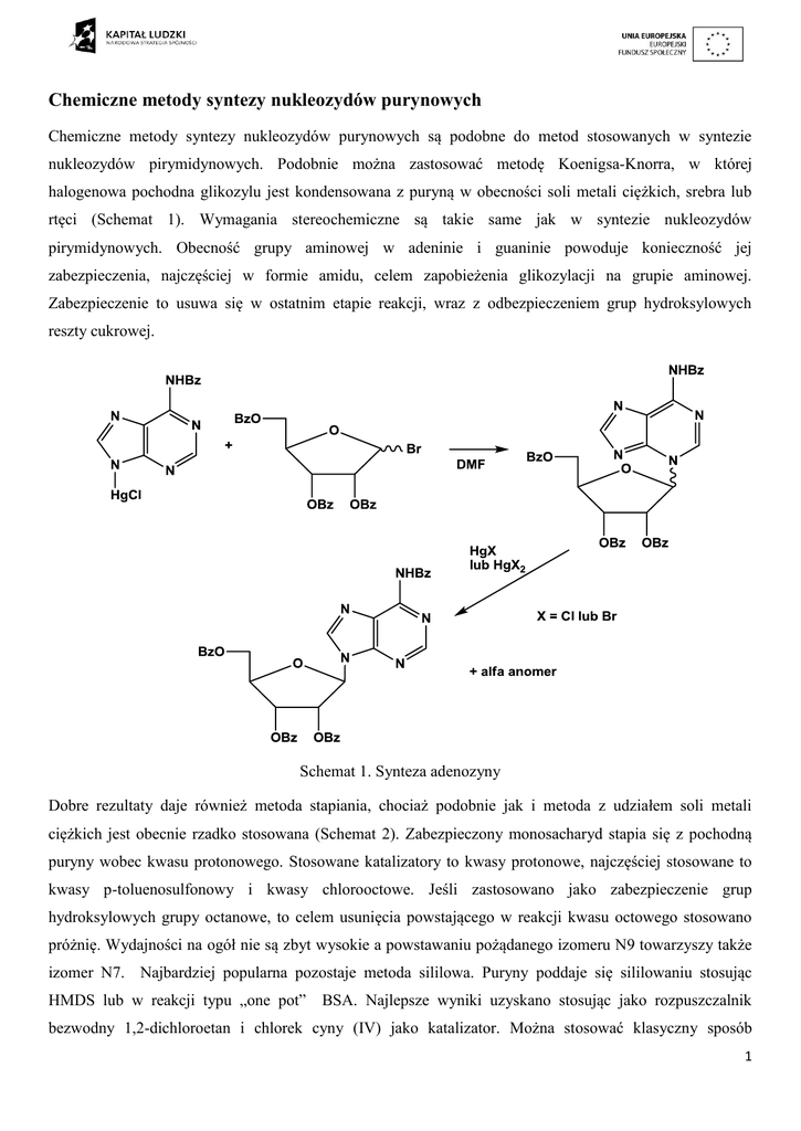 1. Chemiczne metody syntezy nukleozydów purynowych