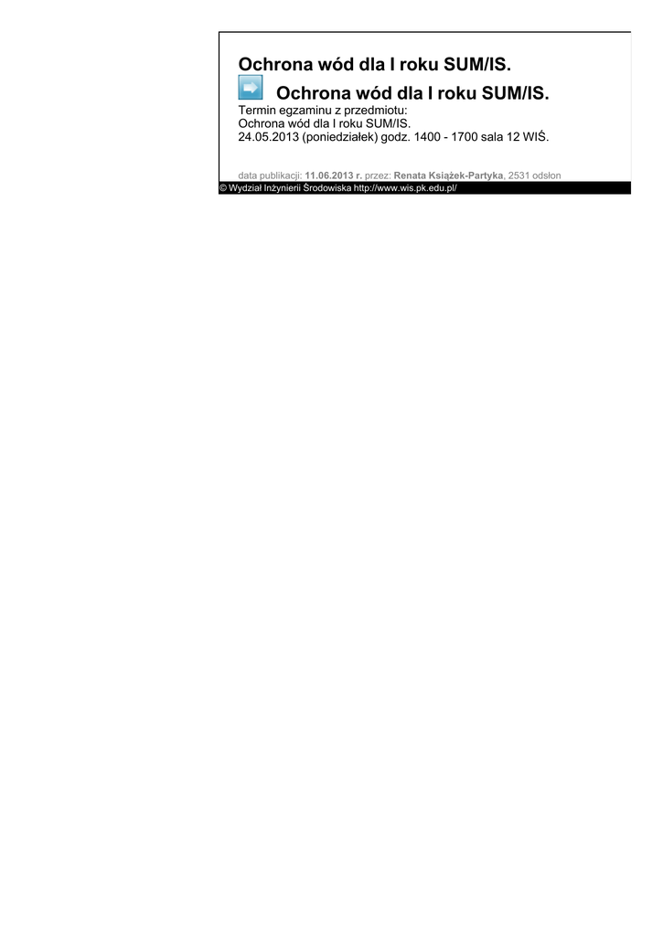 Ochrona wód dla I roku SUM/IS. Ochrona wód dla I roku SUM/IS.