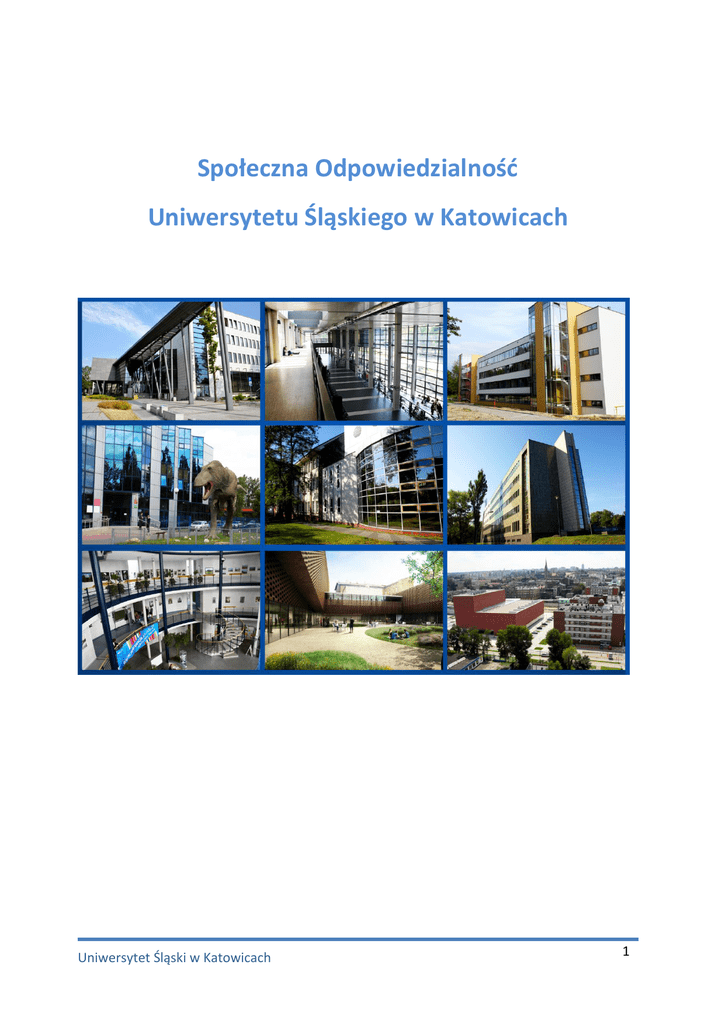 Społeczna Odpowiedzialność Uniwersytetu Śląskiego w Katowicach Uniwersytet Śląski w Katowicach 1 Społeczna Odpowiedzialność Uniwersytetu Jako największa uczelnia śląska Uniwersytet Śląski ma przywilej, a jednocześnie obowiązek, wypowiadania się w sprawach szczególnie ważnych dla naszego Regionu, zespalając swoje działania z oczekiwaniami otoczenia. Uczelnia, utrzymując stały kontakt z instytucjami samorządowymi, organizacjami społecznymi i gospodarczymi, kulturalnymi i oświatowymi, reaguje na płynące stamtąd potrzeby. Budujemy i rozwijamy uniwersytet otwarty, przeznaczony dla wszystkich, a zwłaszcza dla uczniów szkół ponadgimnazjalnych, mieszkańców regionu oraz osób starszych. Celem Uniwersytetu Śląskiego jest również rozwijanie zaplecza kadrowego wspomagającego transfer wiedzy i technologii na Śląsku, animującego sieci współpracy nauka – biznes – samorząd w pełnym możliwym wymiarze. Upowszechnianie idei społecznej odpowiedzialności Uniwersytetu odbywa się m.in. poprzez: 1.Wspólne działania Uniwersytetu Śląskiego z otoczeniem: -Organizację otwartych debat, akcji charytatywnych, edukacyjnych, konferencji i wykładów na tematy ważne i istotne. -Udostępnianie infrastruktury Uniwersytetu Śląskiego dla organizowani przedsięwzięć ważnych dla Regionu i Kraju. -Obejmowanie mecenatem Uniwersytetu Śląskiego oraz patronatami honorowymi przedsięwzięć organizowanych w Regionie. 2. Stałą współpracę z instytucjami otoczenia Uniwersytetu Śląskiego o zasięgu regionalnym, krajowym i międzynarodowym -Współpracę z gospodarką. -transfer wiedzy do gospodarki i komercjalizacja. -wspieranie przedsiębiorczości akademickiej. -Współpracę Uczelni z pracodawcami. -Współpracę z administracją i samorządami lokalnymi i regionalnymi. -Współpracę ze szkołami i organizacjami pożytku publicznego. 3. Promocję i honorowanie wybitnych postaci związanych z Uniwersytetem Śląskim i z naszym Regionem. Uniwersytet Śląski, realizując swoją misję związaną z prowadzeniem badań naukowych, kształceniem studentów oraz współpracą na rzecz otoczenia społeczno-gospodarczego, w 2014 roku planuje zorganizować bardzo wiele działań na rzecz społecznej odpowiedzialności. Niestety, nie jesteśmy w staniu precyzyjnie podać wszystkich tematów i dat konferencji, spotkań na uczelni, warsztatów, także nazw szkół, w których pro publico bono będziemy prowadzić lekcje, jest ich bowiem bardzo dużo. Poniższe opracowanie to wybrane działania prowadzone w UŚ w 2014 r. – wykłady, konferencje, warsztaty, które w swoim charakterze są otwarte dla mieszkańców Regionu. Uniwersytet Śląski w Katowicach 2 1. DEBATY Jest ich wiele, co wynika z istoty Uniwersytetu, jako miejsca spotkań i debat. Wymieńmy zatem przykładowy cykl debat: Debaty społeczne jako forma dialogu ze społeczeństwem i kluczowy determinant bezpieczeństwa. Rola debat w kształtowaniu świadomości obywatelskiej w zakresie bezpieczeństwa i porządku publicznego Inicjatywa dotycząca prowadzenia i organizacji debat społecznych na terenie Katowic. Debaty te będą odbywały się z udziałem Policji, Straży Miejskiej, instytucji samorządowych, przedstawicieli rad jednostek pomocniczych i innych przedstawicieli społeczności lokalnych. Organizatorzy debat: prof. zw. dr hab. Jadwiga Stawnicka (Uniwersytet Śląski), Komenda Miejska Policji w Katowicach oraz Urząd Miasta Katowice, Wydział Zarządzania Kryzysowego. Celem projektu jest zdiagnozowanie potrzeb społecznych w poszczególnych dzielnicach Katowic, wspieranie aktywności obywateli potrzeb i oczekiwań społeczeństwa w zakresie poprawy bezpieczeństwa, a także wykorzystanie wiedzy obywateli na poziomie lokalnym. Tematyka debat obejmuje zagadnienia: bezpieczeństwo w miejscach publicznych i w miejscu zamieszkania; przemoc w rodzinie; bezpieczeństwo w szkole; bezpieczeństwo w środkach komunikacji publicznej; bezpieczeństwo w ruchu drogowym; bezpieczeństwa w Internecie; propozycje współpracy lokalnych społeczności z innymi podmiotami w kwestii zachowania porządku i bezpieczeństwa publicznego. 2. KONKURSY, w tym: Konkurs StRUŚ 2014 (Studencki Ruch Uniwersytetu Śląskiego) - w przyszłym roku koła naukowe będą walczyć o wygraną na podstawie zorganizowanych wydarzeń/akcji w przestrzeni miejskiej. W wyznaczonym miesiącu koła będą miały za zadanie zaangażowanie jak największej liczby mieszkańców Katowic w swoje działanieperformance (m.in. na ul. Mariackiej, na dworcu, na rondzie – właściwie, gdzie tylko przyjdzie im do głowy). Performance zostanie nagrany, a następnie odbędzie się przegląd wszystkich akcji oraz wyłonienie zwycięzcy (początkowa faza projektu) Konkurs Wyróżnień JM Rektora UŚ - w dotychczasowych edycjach nagradzano najlepszych studentów m.in. za działalność społeczną oraz za animowanie życia studenckiego. W 2014 roku kategorie zostaną utrzymane – chcielibyśmy zachęcić instytucje, w których studenci odbywają wolontariat do kontaktu oraz proponowania laureatów. Pełnosprawny biznes - konkurs realizowany przez Centrum Obsługi Studenta z pomocą Biura Współpracy z Gospodarką skierowany do studentów niepełnosprawnych. Uniwersytet Śląski będzie inicjatorem oraz organizatorem, jednak konkurs będzie miał charakter regionalny (bądź nawet ogólnopolski, w zależności od pozyskanych środków sponsorskich), a jego celem będzie wyłonienie autora najlepszego biznesplanu. W ramach nagrody zostaną pozyskane środki na rozpoczęcie działalności (m.in. z PFRON, Banków oraz od sponsorów indywidualnych). Działanie to realizowane jest ze względu na silną oraz widoczną potrzebę aktywizowania osób/studentów niepełnosprawnych do pracy zawodowej. Uniwersytet Śląski w Katowicach 3 3. KAMPANIE SPOŁECZNE, w tym: Kampania społeczna o charakterze profilaktyczno-informacyjnym "Co nas spina? Studencie zadbaj swoją psy