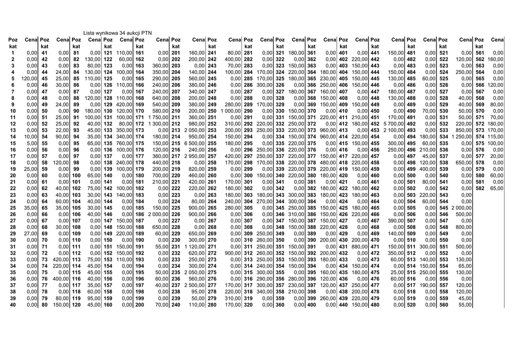 Lista wynikowa 34 aukcji PTN Poz kat Cena Poz kat Cena