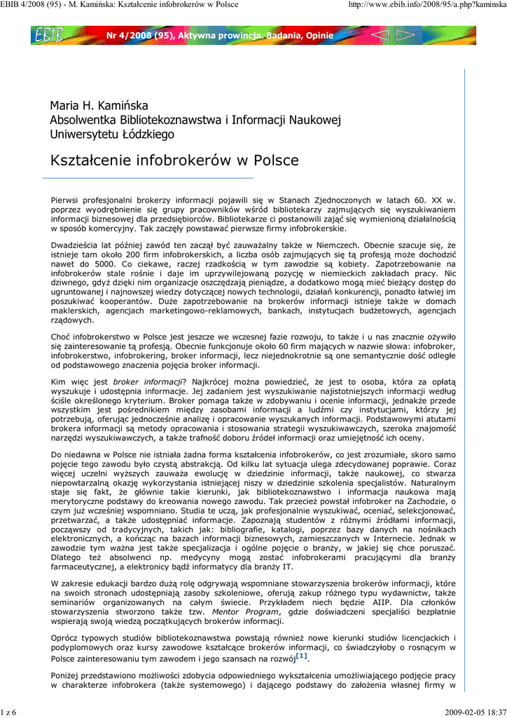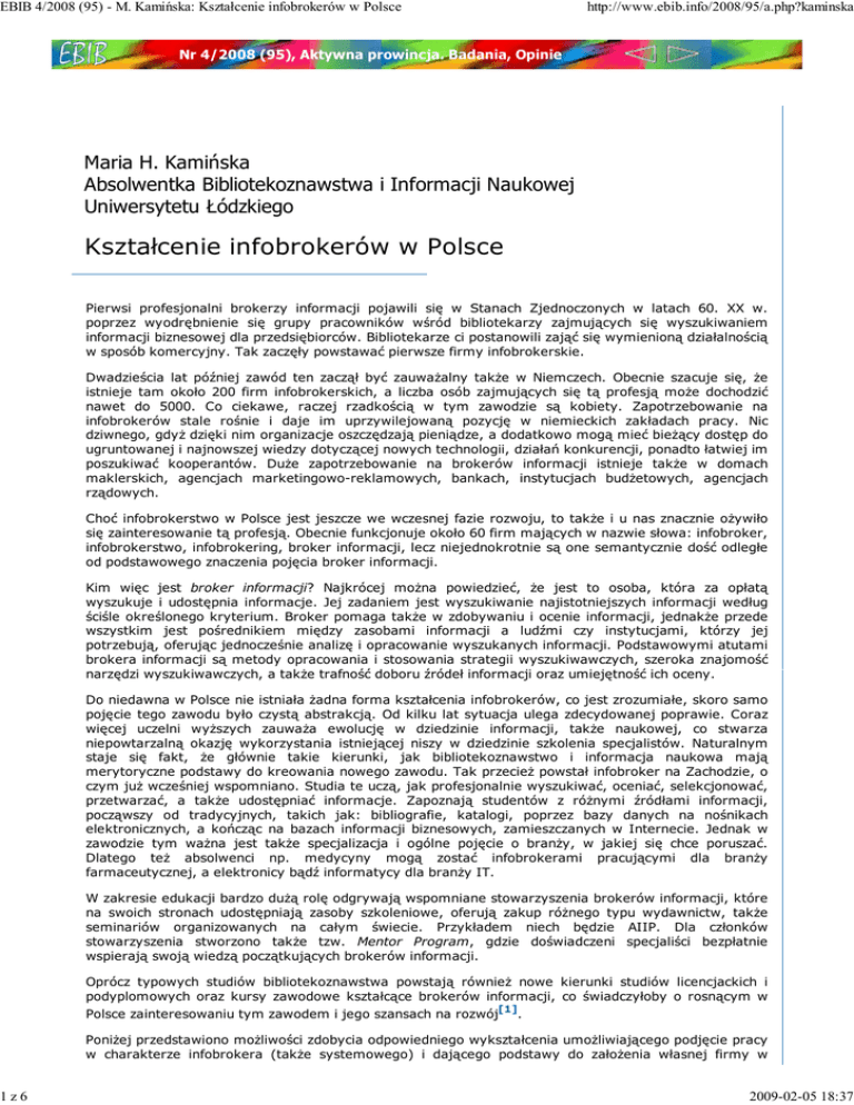 EBIB 4/2008 (95) - Kszta³cenie infobrokerów w Polsce.
