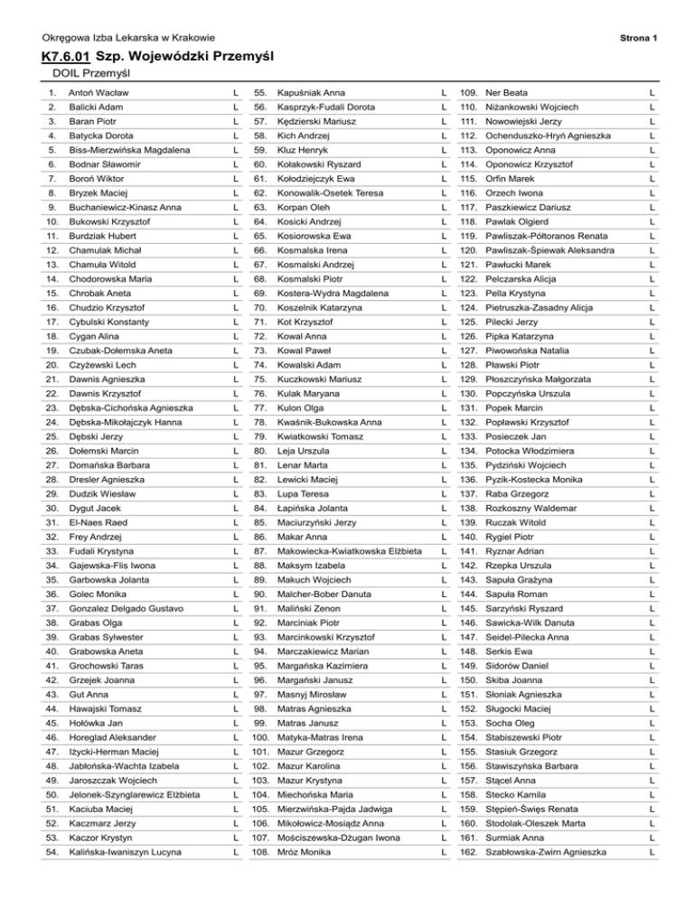 Lista osobowa rejonu - Okręgowa Izba Lekarska w Krakowie