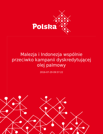 Malezja i Indonezja wspólnie przeciwko kampanii dyskredytującej olej palmowy 2016-07-29 09:57:22 2 Malezja i Indonezja będą współpracowały przeciwko kampanii dyskredytującej olej palmowy. Doprowadziła ona według tych państw m.in. do spadku eksportu tego surowca do Chin aż o 50% w pierwszej połowie 2016 r. Spotkanie w tej sprawie ma odbyć się, na szczeblu ministerialnym, jeszcze w lipcu br. Producenci oleju palmowego konkurują na tym rynku z producentami oleju sojowego. 3