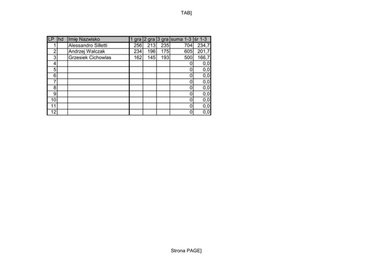 TAB] LP hd Imię Nazwisko 1 gra 2 gra 3 gra suma 1