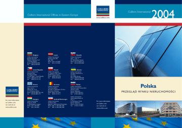 Colliers International Colliers International Offices in Eastern Europe www.colliers.com Bulgaria Colliers International Business Park Sofia Mladost 4, Building 13, III 1715 Sofia, Bulgaria Phone: (359-2) 976 9976 Fax: (359-2) 976 9977 Czech Republic Colliers International Slovanský Dům Na Příkopě 22/859 110 00 Prague 1, Czech Republic Phone: (420) 221 451 518 Fax: (420) 221 451 514 For more information on Colliers, visit our web site at www.colliers.com Latvia Colliers International Bauskas street 58A Riga 1004 Phone: (371-7) 10 3399 Fax: (371-7) 10 3393 Poland Colliers International ul. Wspólna 47/49, II floor 00-684 Warsaw, Poland Phone: (48-22) 622 4414 Fax: (48-22) 622 8633 Slovakia Colliers International Nám. 1. mája 11 811 06 Bratislava, Slovakia Phone: (421-2) 5939 6116 Fax: (421-2) 5939 6200 Ukraine Colliers International 34 Velyka Vasylkivska St., 2nd Floor Kyiv 01004, Ukraine Phone: (380-44) 490-5700 Fax: (380-44) 244-2799 Greece Romania Russia Colliers International Agora Centre Kifissias Ave. 10-12 151 25 Marousi, Athens Phone: (30-210) 6801143 to 46 Fax: (30-210) 6835-175 Colliers International The Grand Offices 90, Calea 13 Septembrie, 7th floor Bucharest 5, Romania Phone: (40-21) 412 0101 Fax: (40-21) 412 0111 Colliers International Mosenka II, 25/3 Tsvetsnoi Blvd. Moscow, 127051 Russian Federation Phone: (7-501) 258 5151 Fax: (7-501) 258 5152 Hungary Colliers International Margit krt. 87-89 H-1024 Budapest, Hungary Phone: (36-1) 336 4200 Fax: (36-1) 336 4201 Serbia & Montenegro Colliers International 20, Bulevar Mira Belgrade 11000, Serbia & Montenegro Phone: (381-11) 306 5205, 5206 Fax: (381-11) 306 5205, 5206 2004 Colliers International Moika Naberezhnaya, 36 Floor 6 St. Petersburg, 191186 Russian Federation Phone: (7-812) 118 3618 Fax: (7-812) 118 3816 Polska PRZEGLĄD RYNKU NIERUCHOMOŚCI For more information on Colliers, visit our web site at www.colliers.com POLSKA Colliers International ul. Wspólna 47/49, II floor 00-684 Warsaw, Poland Phone: (48-22) 622 4414 Fax: (48-22) 622 8633 Szanowni Klienci i Przyjaciele, Colliers International Poland zakoƒczy∏ kolejny udany rok utrzymujàc polityk´ reprezentacji najemcy, w której jest zdecydowanym liderem. Dzia∏y inwestycyjny i powierzchni handlowych Colliers International odnotowa∏y pierwsze sukcesy w 2003 roku. Grupa inwestycyjna zarzàdzana przez Jana Bank´ doradzi∏a ING Asset Management zakup budynku Microsoft House, a tak˝e sprzeda˝ ˚oliborz Plaza firmie Skanska Property Poland. Dzia∏ powierzchni handlowych, z Jarkiem Lipiƒskim na czele, reprezentowa∏ Ahold przy otwieraniu licznych centrów handlowych. Wszyscy pracownicy Colliers prze˝yli niezapomniane chwile obserwujàc rozwój i ekspansj´ firmy i dzielàc swoje sukcesy z innymi cz∏onkami grupy. Siedmioro pracowników mia∏o szans´ doskonaliç si´ zawodowo, w tym pi´ç osób zdobywa∏o polskie uprawnienia zarzàdcy nieruchomoÊci, rzeczoznawcy i poÊrednika, a dwie osoby przygotowujà si´ do mi´dzynarodowych podyplomowych studiów wyceny nieruchomoÊci. Pawe∏ Ska∏ba i Robert Karniewski zostali awansowani na stanowiska Associate Directors, co by∏o efektem ich ci´˝kiej pracy i lojalnoÊci wobec Colliers International. Zesz∏y rok okaza∏ si´ trudny dla rynku nieruchomoÊci w Polsce, jednak ostatnie 6 miesi´cy roku da∏o nadziej´ na nowe transakcje i rosnàce zainteresowanie najemców. Ostatni rok przypomnia∏ czasy mojej pracy w Londynie w latach 1995–1997, kiedy to rynek wydawa∏ si´ uÊpiony, a˝ do momentu, gdy po up∏ywie pó∏ roku zda∏em sobie spraw´, jak dynamiczny by∏ to okres dla rynku. W 2004 roku szacuje si´ wzrost PKB do poziomu 5 %. Mo˝na by zatem zapytaç co przyniesie rok 2005? Ju˝ teraz rynek obawia si´ wzrostu d∏ugu publicznego, który destabilizowa∏ rynek walutowy i który mo˝e prowadziç do powa˝nej nadwy˝ki kosztów d∏ugu publicznego i du˝ych wahaƒ na rynku walutowym. Jaki wp∏yw na rynek w 2004 roku b´dzie mia∏a Unia Europejska? Czy Warszawa stanie si´ drugim Berlinem, gdzie stawki czynszu wahajà si´ w granicach 6 euro za metr kwadratowy? Czy wzroÊnie krajowy popyt dzi´ki mi´dzynarodowym inwestorom chcàcym podwy˝szyç udzia∏y rynkowe w stabilnej koniunkturze? Wiele z tych pytaƒ, teraz bez odpowiedzi, znajdzie rozwiàzania w 2004 roku. Wierz´, ˝e dla Warszawy min´∏y ju˝ najgorsze czasy i wkrótce ten rynek ulegnie konsolidacji, a popyt zachowa tendencj´ wzrostowà w ciàgu bie˝àcego roku. Korzystajàc z okazji chcia∏bym podzi´kowaç wszystkim naszym klientom i pracownikom za ich wspólny wysi∏ek w tworzeniu sukcesów Colliers International Poland. Dzi´kuj´, Colliers International HADLEY DEAN DYREKTOR ZARZĄDZAJĄCY POLAND Ekonomia Polska www.colliers.com Ekonomia P o dwóch latach słabego wzrostu ekonomicznego w Polsce rok 2003 zaskoczył nawet najbardziej optymistycznych analityków. W 2002 roku większość instytucji finansowych przewidywała wzrost PKB na poziomie około 2,5 % rocznie. Obecne dane sugerują, że wzrost PKB pod koniec roku 2003 może wynieść nawet 4 %. Ostatni kwartał roku 2003 wskazuje również na dynamiczny wzrost PKB w przyszłym roku. Prognozy mówią, że PKB w 2004 roku powinien wynieść przynajmniej 4,0 do 4,5 %. portu, który wyrażony w dolarach wyniósł w październiku 33,7 % w porównaniu do analogicznego okresu zeszłego roku. Wzrost eksportu był wspierany przez coraz słabszy złoty oraz poprawę sytuacji ekonomicznej w Niemczech, naszego największego partnera handlowego. Wzrost importu wyniósł 18,2 % wyrażony w dolarach. Słaby złoty miał pozytywny wpływ na cenę produktów krajowych w porównaniu do towarów importowanych. Głównym czynnikiem wpływającym pozytywnie na ekonomię w 2003 roku był znaczący przyrost eks- Produkcja przemysłowa w ciągu pierwszych 10 miesięcy 2003 roku wzrosła o 12,1 % z miesięcznym wzrostem na poziomie średnio 5,5 %. Przemysł przetwórczy doświadczył