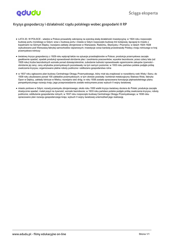 Edudu.pl - Kryzys gospodarczy i działalność rządu polskiego wobec