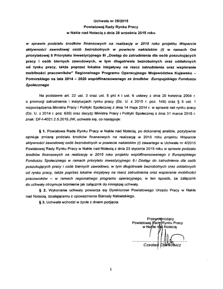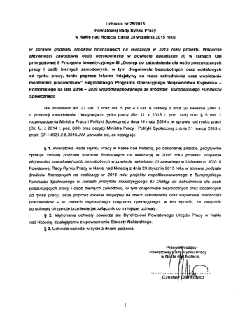 Uchwała nr 25/2015 Powiatowej Rady Rynku Pracy w Nakle nad