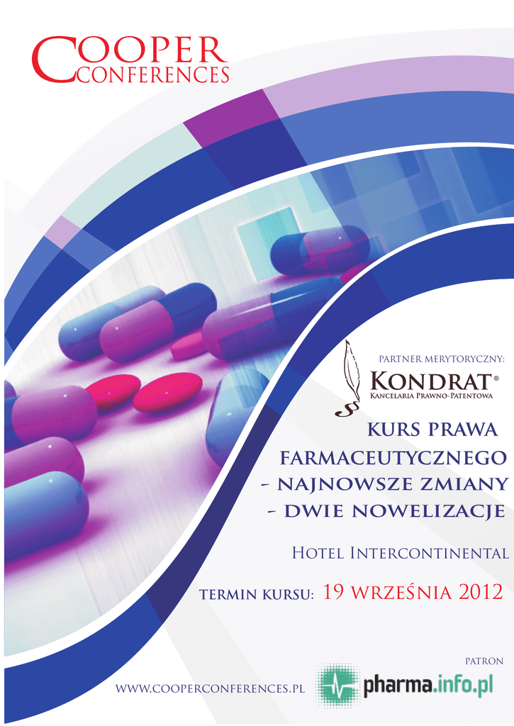 PARTNER MERYTORYCZNY: kurs prawa farmaceutycznego - najnowsze zmiany - dwie nowelizacje Hotel Intercontinental TERMIN KURSU: 19 wrzeœnia 2012 PATRON www.cooperconferences.pl kurs prawa farmaceutycznego – najnowsze zmiany - dwie nowelizacje Hotel Intercontinental 19 wrzeœnia 2012 9:30 rejestracja uczestników . 10:00-11.30 Procedury rejestracyjne i pharmacovigilance . - Procedury narodowa i centralna, MRP i DCP - Zmiany porejestracyjne, do-and-tell - Nowe obowi¹zki w zakresie pharmacovigilance - Pharmacovigilance wobec importerów równoleg³ych - Wy³¹cznoœæ danych rejestracyjnych 8+2+1 – jak liczyæ? . 11.30-11.45 Przerwa . 11.45 – 12.30 Opakowanie i znakowanie . - Obligatoryjne i fakultatywne oznakowanie opakowañ - Problemy w zakresie nazw leków – praktyka URPL - Wytyczne URPL w zakresie nazw leków - Zabezpieczenia opakowañ – ochrona przed podróbkami PROWADZ¥CY: - Znaki towarowe leków - Nazwy generyków leków z procedury centralnej MARIUSZ KONDRAT, - Ulotki i badanie ich czytelnoœci Doktor prawa, europejski rzecznik patentowy, prowadzi . KONDRAT Kancelariê - Reklama kierowana do publicznej wiadomoœci Prawno-Patentow¹, - Ograniczenia w reklamie kierowanej wczeœniej pracowa³ w UKIE do profesjonalistów - Reklama aptek i na UKSW jako adiunkt. - Reklama w Internecie Od ponad 10 lat czynnie - Praktyczne problemy z ocen¹ prawn¹ reklamy leków zaanga¿owany w tworzenie - Najnowsze decyzje GIF w sprawie reklamy i interpretowanie polskiego - Reklama w kontekœcie ustawy refundacyjnej . prawa farmaceutycznego 13.30– 14.30 Lunch i prawa w³asnoœci przemys³o. 14.30 – 16.00 Dystrybucja hurtowa i detaliczna. wej. Redaktor i wspó³autor pierwszego na polskim rynku Import równoleg³y i docelowy komentarza do ustawy – . - Obrót hurtowy – ograniczenia Prawo farmaceutyczne. - Dystrybucja bezpoœrednia Autor licznych publikacji - Broker farmaceutyczny – nowym uprawnionym dotycz¹cych farmacji, do obrotu lekami wyrobów medycznych, - Warunki dzia³alnoœci brokera farmaceutycznego suplementów diety - Model logistyczny i znaków towarowych. - Procedura importu równoleg³ego leków . 12.30-13.30 Reklama leków - Przepakowywanie leków w imporcie równoleg³ym - Import docelowy i import docelowy cenowy - Procedura importu docelowego leków . 16:00 Zakoñczenie KONTAKT: W razie pytañ pozostajê do Pañstwa dyspozycji: Konrad Pyra Project Manager tel.: (22) 251 03 17 kom.: +48 604904939 fax.: (22) 875 84 97 [email protected] kurs prawa farmaceutycznego – najnowsze zmiany - dwie nowelizacje 19 wrzeœnia 2012 hotel InterContinental Warszawa 22 875 84 97 [email protected] PROSIMY O WYS£ANIE FORMULARZA NA NUMER FAKSU FORMULARZ ZG£OSZENIOWY lub SKANU NA ADRES E-MAIL: Imiê i nazwisko Stanowisko Firma Ulica, nr Kod Miasto Telefon Fax E-mail Warunki uczestnictwa TAK, chcê wzi¹æ udzia³ w Kursie Prawa farmaceutycznego - najnowsze zmiany - dwie nowelizacje 19 wrzeœnia 2012, hotel InterContinental Warszawa Nie, nie wezmê udzia³u w prezentowanym Warsztacie, jednak proszê o informowanie mnie o planowanych wydarzeniach organizowanych przez Cooper Group Sp. z o.o. Proszê o wystawienie faktury VAT. W przypadku koniecznoœci wystawienia faktury VAT proszê podpisaæ niniejsze oœwiadczenie Pe³na nazwa firmy Z siedzib¹ Przy ulicy Oœwiadcza, ¿e jest p³atnikiem VAT i posiada nr NIP: Upowa¿niam firmê Cooper Group Sp. z o.o. do wystawienia faktury VAT. Równoczeœnie oœwiadczamy, ¿e zapoznaliœmy siê z warunkami uczestnictwa oraz zobowi¹zujemy siê do zap³aty ca³oœci kwoty. Zgodnie z ustaw¹ z dnia 29 sierpnia 1997 r. o ochronie danych osobowych (Dz.U. 1997 r. Nr 133 poz.833) Cooper Group Sp. z o.o. z siedzib¹ przy ul. Grzybowskiej 4/91, 00-131 w Warszawie, informuje, ¿e jest administratorem danych osobowych. Wyra¿amy zgodê na przetwarzanie danych w celu promocji ofert Cooper Group Sp. z o.o. Wyra¿amy równie¿ zgodê na otrzymywanie drog¹ elektroniczn¹ ofert oraz informacji handlowych dotycz¹cych Cooper Group Sp. z o.o. oraz klientów Cooper Group Sp. z o.o. Wyra¿aj¹cemu zgodê na przetwarzanie danych osobowych przys³uguje prawo kontroli przetwarzania danych, które jej dotycz¹, w tym tak¿e prawo ich poprawiania. Równoczeœnie oœwiadczamy, ¿e zapoznaliœmy siê z warunkami uczestnictwa oraz zobowi¹zujemy siê do zap³aty ca³oœci kwot wynikaj¹cych z niniejszej umowy. Cooper Conferences Cooper Group Sp. z o.o. 1. Koszt uczestnictwa: 999 + VAT 2. Kolejny uczestnik z tej samej firmy otrzymuje 10% rabatu. 3. Cena obejmuje prelekcje, materia³y, przerwy kawowe oraz lunch. 4. Po otrzymaniu zg³oszenia, przeœlemy Pañstwu potwierdzenie udzia³u i fakturê pro forma 5. Prosimy o dokonanie wp³aty w terminie 14 dni od wys³ania zg³oszenia, ale nie póŸniej ni¿ przed rozpoczêciem Konferencji 6. P³atnoœci nale¿y dokonywaæ na podstawie faktury. 7. Wp³at nale¿y dokonaæ na konto: Alior Bank Spó³ka Akcyjna Al. Jerozolimskie 94, 00-807 Warszawa 57 2490 0005 0000 4520 9674 8733 SWIFT: ALBPPLPW 8. Rezygnacjê z udzia³u nale¿y przes³aæ do organizatora na adres [email protected] lub pod nr faksu 22 875 84 97 9. W przypadku rezygnacji do 27 sierpnia 2012 r. obci¹¿ymy Pañstwa op³at¹ administracyjn¹ w wysokoœci 450 z³ brutto. 10. W przypadku rezygnacji po 27sierpnia 2012 r. pobierane jest 100% wysokoœci op³aty za udzia³. 11. Nie odwo³anie zg³oszenia i nie wziêcie udzia³u w Konferencji powoduje obci¹¿enie pe³nymi kosztami udzia³u. 12. Nie dokonanie wp³aty nie jest równoznaczne z rezygnacj¹ z udzia³u. 13. Zamiast zg³oszonej osoby w Konferencji mo¿e wzi¹æ udzia³ inny pracownik firmy. 14. Organizator zastrzega sobie prawo do zmian w programie lub jej odwo³ania. 15. Rabaty i specjalne warunki uczestnictwa nie ³¹cz¹ siê. ul... Grzybowska 4/91 | 00-131 Warszawa | tel: (22) 251 03 17 | fax: (22) 875 84 97 [email protected]