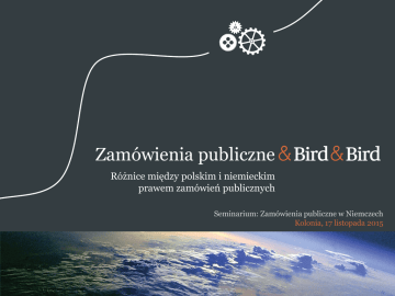 Zamówienia publiczne Różnice między polskim i niemieckim prawem zamówień publicznych Seminarium: Zamówienia publiczne w Niemczech Kolonia, 17 listopada 2015 Agenda • • • • • • • Akty prawne Informacje o przetargach Składanie ofert Badanie i ocena ofert Uzupełnienie dokumentów Moment zawarcia umowy o zamówienie publiczne Środki ochrony prawnej Strona 2 © Bird & Bird 2015 Różnice między polskim i niemieckim prawem zamówień publicznych 17/11/2015 Akty prawne Akty prawne – poziom europejski Na poziomie europejskim, polskie i niemieckie prawo zamówień publicznych oparte jest na tych samych dyrektywach europejskich, przede wszystkim: • • • • zamówienia klasyczne: dyrektywa 2004/18/WE; od 18 kwietnia 2016 dyrektywa 2014/24/UE zamówienia sektorowe: dyrektywa 2004/17/WE; od 18 kwietnia 2016 dyrektywa 2014/25/UE dyrektywa odwoławcza: dyrektywa 2007/66/WE dyrektywa obronna: 2009/81/WE Strona 4 © Bird & Bird 2015 EBB zamówienia przedkomercyjne 8/10/2015 Akty prawne – poziom krajowy Polskie PZP Ustawa Prawo zamówień publicznych z 29 stycznia 2004 r. – główny akt prawny • Wiele aktów prawnych regulujących odpowiednio: • zamówienia podprogowe • zamówienia ponadprogowe dokumentów, których może żądać zamawiający od wykonawców • zamówienia na usługi i dostawy • zamówienia na roboty budowlane środków ochrony prawnej • zamówienia na usługi tzw. "wolnych zawodów" + rozporządzenia wykonawcze dotyczące np.: • Niemieckie PZP Page 5 © Bird & Bird 2015 Różnice między polskim i niemieckim prawem zamówień publicznych 17/11/2015 Informacje o przetargach Informacje o przetargach Polskie PZP Niemieckie PZP Przetargi ponadprogowe – oficjalny publikator: Przetargi ponadprogowe – oficjalny publikator: Dziennik Urzędowy Unii Europejskiej Dziennik Urzędowy Unii Europejskiej http://ted.europa.eu/TED/main/HomePage.do http://ted.europa.eu/TED/main/HomePage.do Przetargi podprogowe – oficjalny publikator: Biuletyn Urzędu Zamówień Publicznych Przetargi podprogowe – brak jednolitego oficjalnego publikatora http://www.uzp.gov.pl/cmsws/page/?D;1052 Dostępne są bazy danych: federalne, np.: http://www.bund.de/ lokalne, np.: http://www.vergabe.berlin.de/main.html http:// www.evergabe.nrw.de oraz komercyjne, np.: https://www.vergabe24.de/ Page 7 © Bird & Bird 2015 Różnice między polskim i niemieckim prawem zamówień publicznych 17/11/2015 Składanie ofert Składanie ofert – cz. I Polskie PZP Niemieckie PZP Zamawiający może bądź musi żądać od wykonawców wniesienia wadium. Brak instytucji wadium. Zasadniczo składane oferty są jawne dla konkurencji oraz podmiotów trzecich (poza częściami skutecznie zastrzeżonymi przez wykonawcę jako tajemnica przedsiębiorstwa). Składane oferty są poufne w całości. Dostęp do ofert ma jedynie zamawiający. Brak możliwości kopiowania ofert konkurencji. Zaoferowana cena jest zawsze jawna. Zaoferowana cena jest zawsze poufna. Otwarcie ofert jest zawsze jawne. Zasadniczo nie ma publicznego otwarcia ofert. Jawne otwarcie ofert tylko w przetargach na roboty budowlane. W praktyce oferty składa się osobiście. W praktyce oferty wysyła się pocztą. Maksymalne terminy związania ofertą określone w ustawie PZP. Brak wytycznych co do minimalnych lub maksymalnych terminów związania ofertą – termin związania ofertą powinien być możliwie najkrótszy. Page 9 © Bird & Bird 2015 Różnice między polskim i niemieckim prawem zamówień publicznych 17/11/2015 Składanie ofert – cz. II Polskie PZP Brak systemu prekwalifikacji. Niemieckie PZP Istnieje system prekwalifikacji wykonawców – certyfikat o prekwalifikacji z instytucji certyfikującej: www.pq-vol.de (dostawy i usługi) www.pq-verein.de (roboty budowlane) Zamawiający żąda dokumentów potwierdzających, że wykonawca spełnia warunki podmiotowe w przetargu. Page 10 © Bird & Bird 2015 Zamawiający nie żąda dokumentów potwierdzających, że wykonawca spełnia warunki podmiotowe w przetargu. Wystarczający jest certyfikat prekwalifikacji lub oświadczenie własne "Eigenerklärung". Różnice między polskim i niemieckim prawem zamówień publicznych 17/11/2015 Badanie i ocena ofert Badanie i ocena ofert Polskie PZP Niemieckie PZP Badanie ofert nie jest podzielone na etapy. Badanie ofert jest podzielone na etapy: • Etap I - formalny Ustawa PZP nie wyznacza terminu w którym musi nastąpić badanie ofert. • Etap II – ocena właściwości podmiotowych wykonawcy • Etap III – ocena ceny ofert • Etap IV – końcowa ocena kryteriów i wyłonienie najkorzystniejszej oferty Wykonawcy otrzymują jedną zbiorczą informację z badania ofert, która zawiera informację o najkorzystniejszej ofercie, wykonawcach wykluczonych, odrzuconych ofertach. Page 12 © Bird & Bird 2015 Różnice między polskim i niemieckim prawem zamówień publicznych 17/11/2015 Uzupełnianie dokumentów Uzupełnienie dokumentów Polskie PZP Niemieckie PZP Zamawiający ma obowiązek wezwać wykonawcę do uzupełnienia oświadczeń, dokumentów na potwierdzenie warunków udziału w postępowaniu lub pełnomocnictw, które nie zostały złożone wraz z ofertą lub zostały złożone, ale zawierają błędy (chyba, że oferta wykonawcy podlega odrzuceniu). Zamawiający może, ale nie musi wezwać wykonawcę do uzupełnienia dokumentów. Decyzja należy do zamawiającego. Złożone oświadczenia i dokumenty powinny potwierdzać spełnianie przez wykonawcę warunków udziału w postępowaniu nie później niż w dniu, w którym upłynął termin składania ofert. Data uzupełnianych oświadczeń / dokumentów zależy od treści specyfikacji przetargowej. Termin uzupełnienia dokumentów wyznacza zamawiający. W praktyce jest to najczęściej kilka dni. Termin uzupełnienia dokumentów wyznacza zamawiający. W praktyce jest to najczęściej kilka dni. Jeśli zamawiający decyduje się skorzystać z prawa wezwania wykonawców do uzupełnie