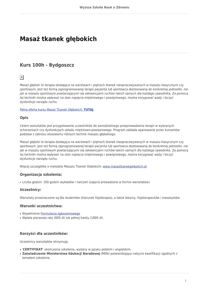 Masaż tkanek głębokich - Wyższa Szkoła Nauk o Zdrowiu