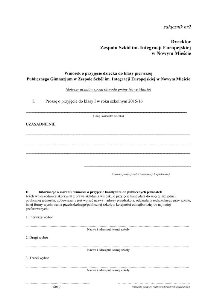 załącznik nr2 Dyrektor Zespołu Szkół im. Integracji Europejskiej w