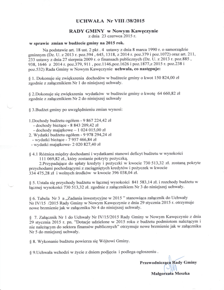 Uchwały Nr IYĄ5lż015 Rady Gminy w Nowym Kawęczynie z dnia